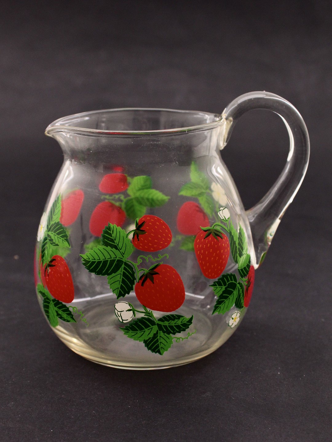 Retro jordbær sæt dekoreret med emalje maling kande H. 14 cm. skål H. 8 cm. D. 21 emne nr. 526429 Udstiller