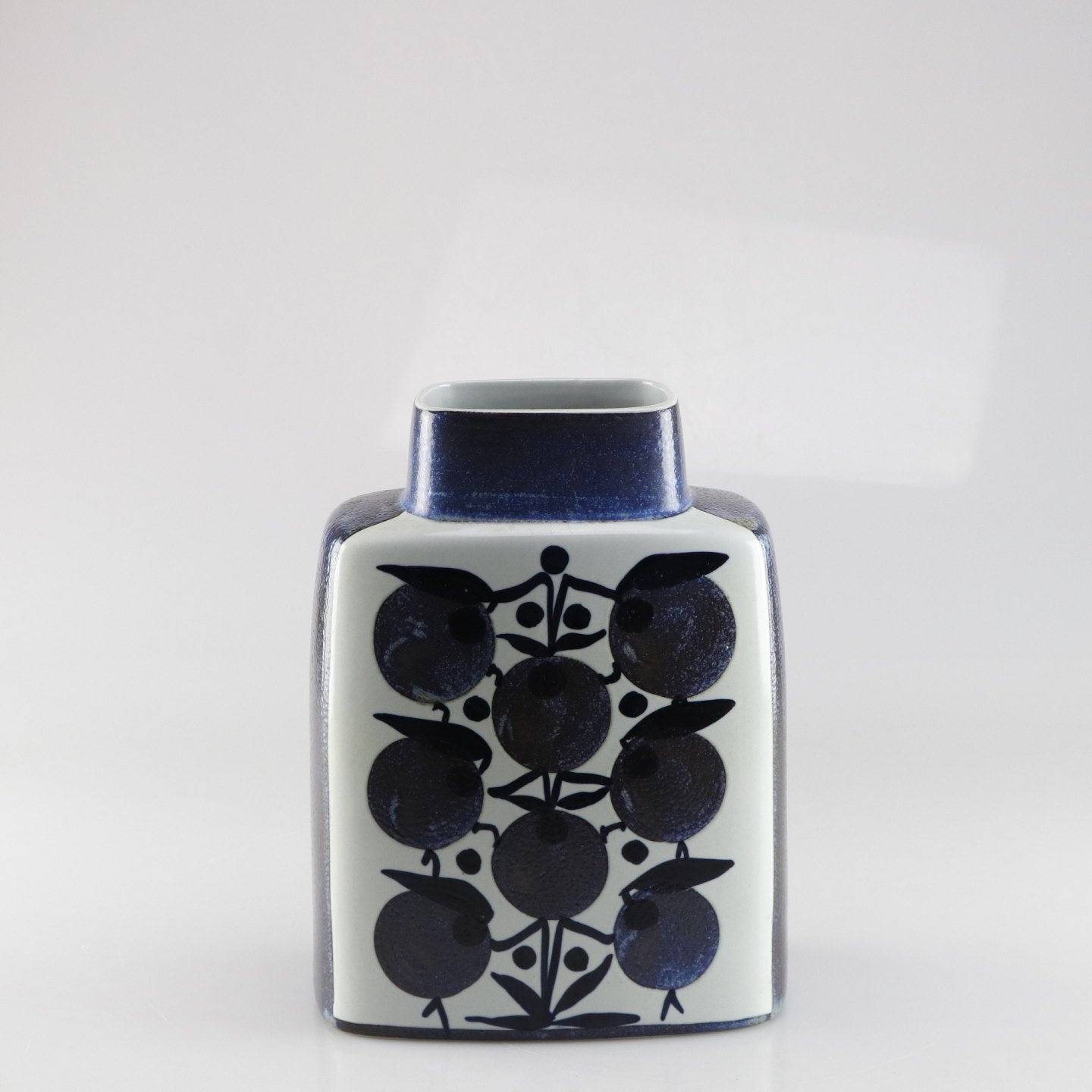 Rektangulær fajance vase med blåt motiv no 441/3121 - BacaDesign Grethe Helland Hansen