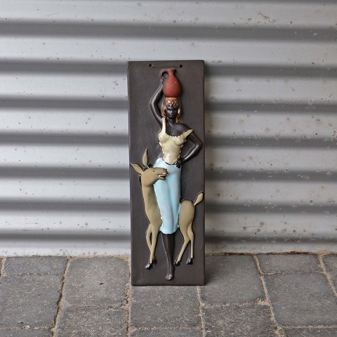 Keramik relief no 997 med motiv af kvinde med æsel