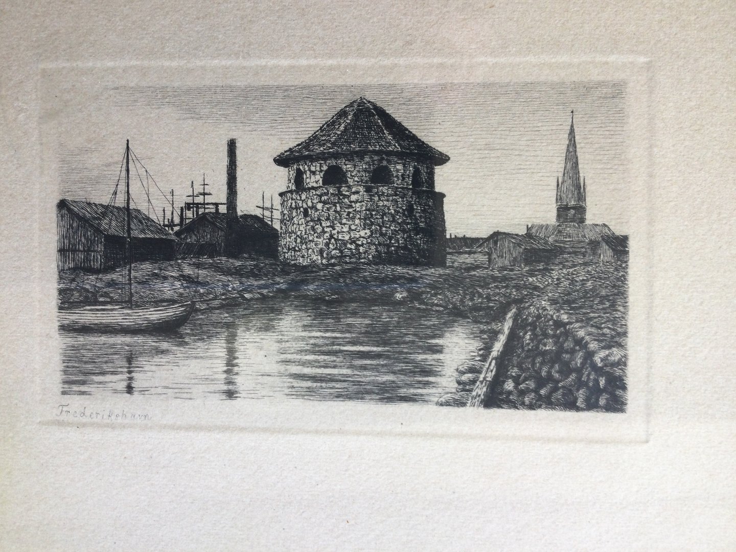 Ubekendt kunstner (20 årh):Krudttårnet i Frederikshavn på sit oprindelige plads.