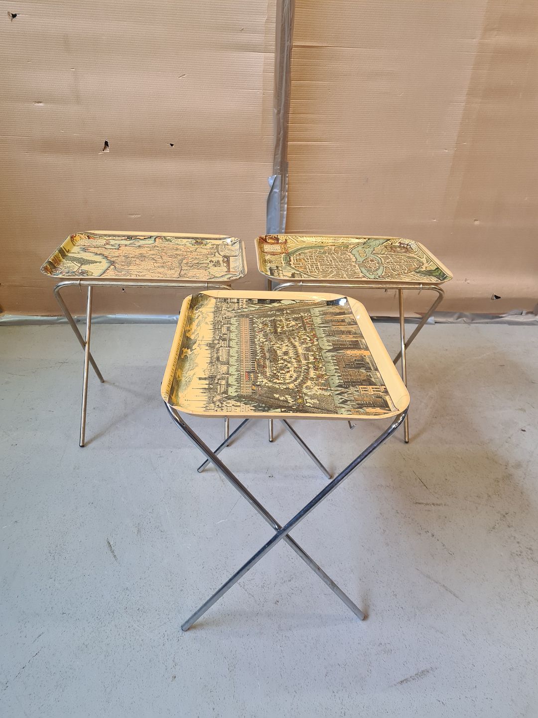 3 Små bakkeborde i metal og plast, fra 1980-1990erne.H 47cm B 46cm D 36cm