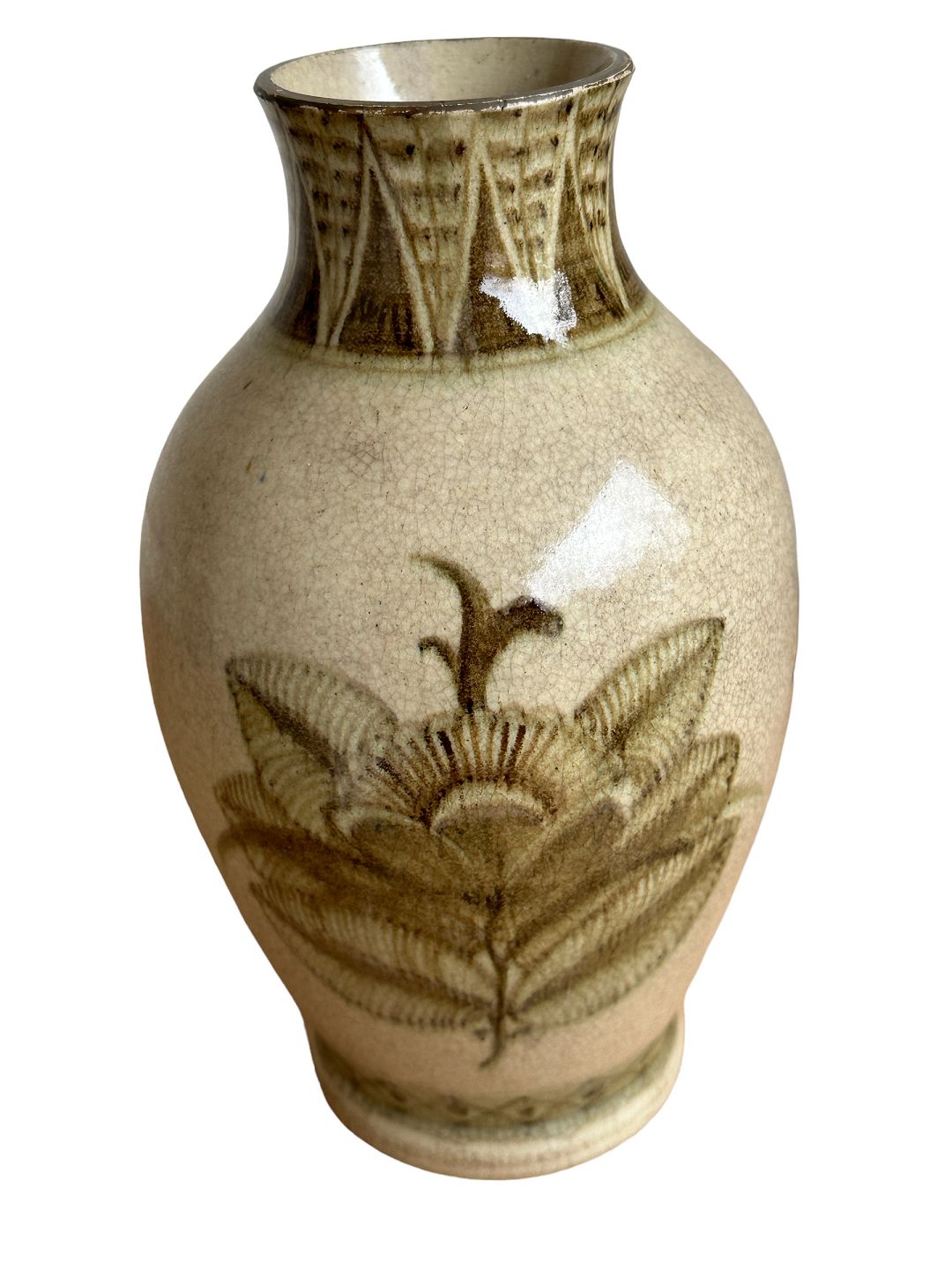 Unikat Vase von Patrick Nordström aus seiner eigenen Werkstatt in Islev in Dänemark. Signiert mit Monogramm-Signatur sowie "ISLE" und datiert 1924.Patrick Nordström war berühmt für seine Glasuren, aber meines Wissens sieht man selten eine Craquelé-Glasur von seiner Hand.