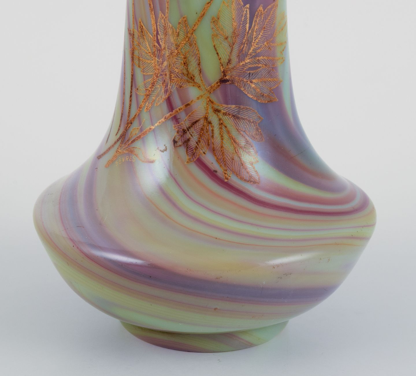 Sevres, fransk kunstglasvase, håndmalet marmor lignende dekoration samt gulddekoreret blomsterbuket.Tidligt 1900-tallet.
