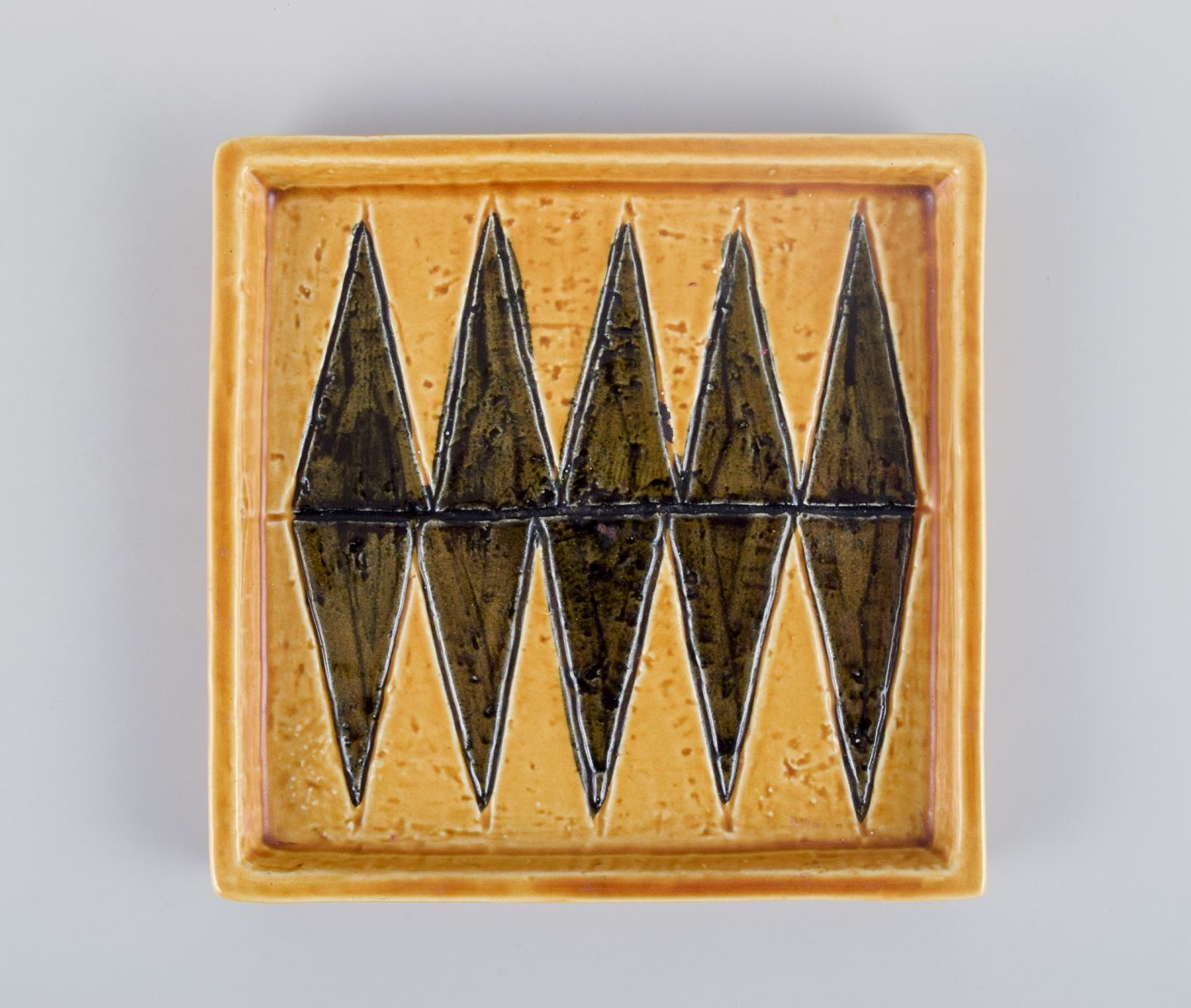 Rörstrand, square ceramic dish from the "Harlekin" series.Produced in the 1960s.