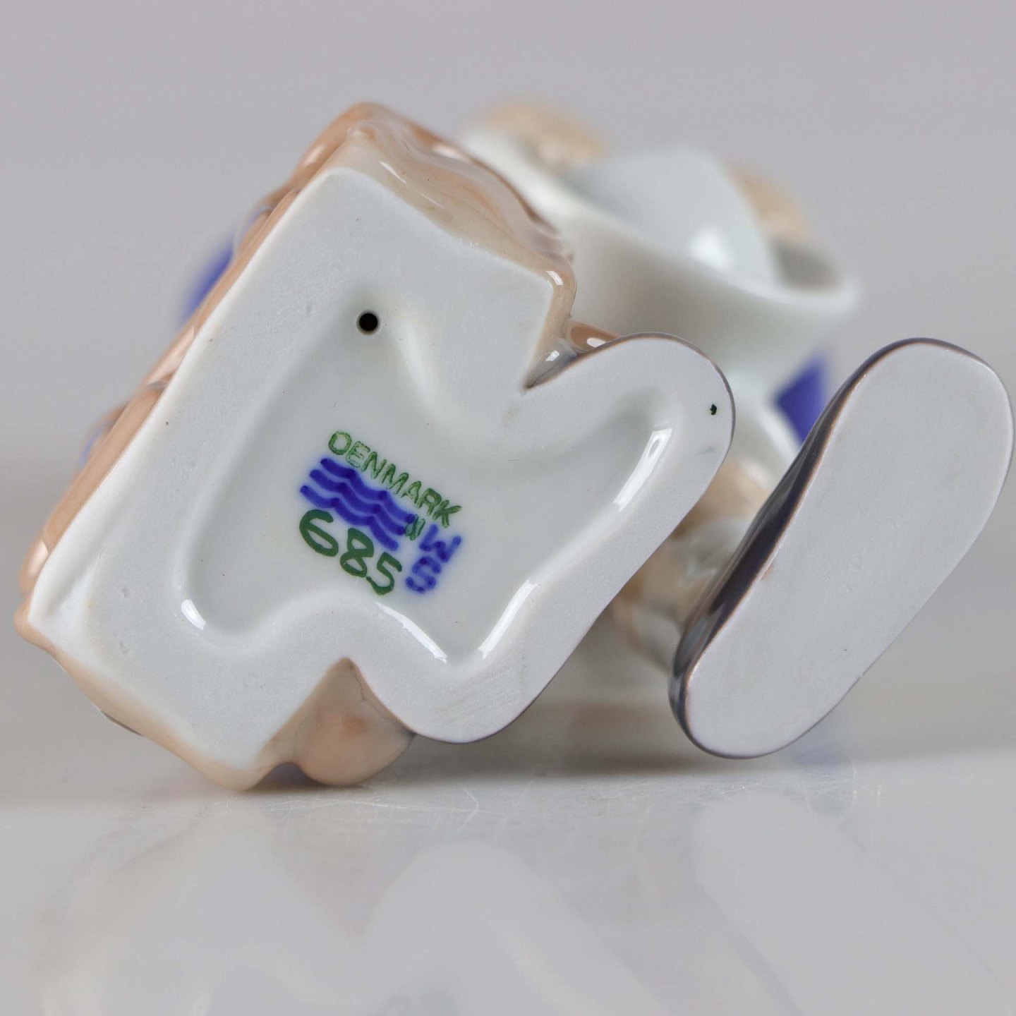 Figur i porcelæn med motiv af en dreng iklædt skoleuniform og med skoletaske no 685Producent Royal Copenhagen