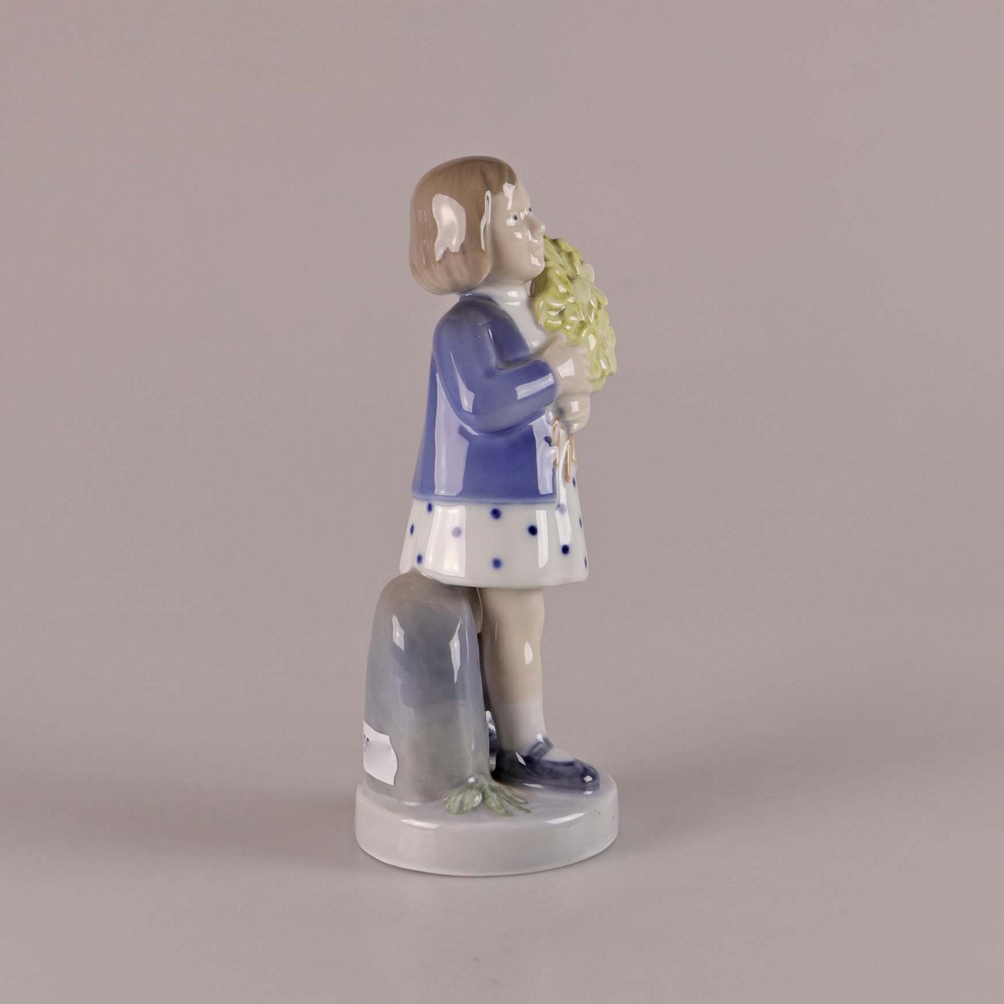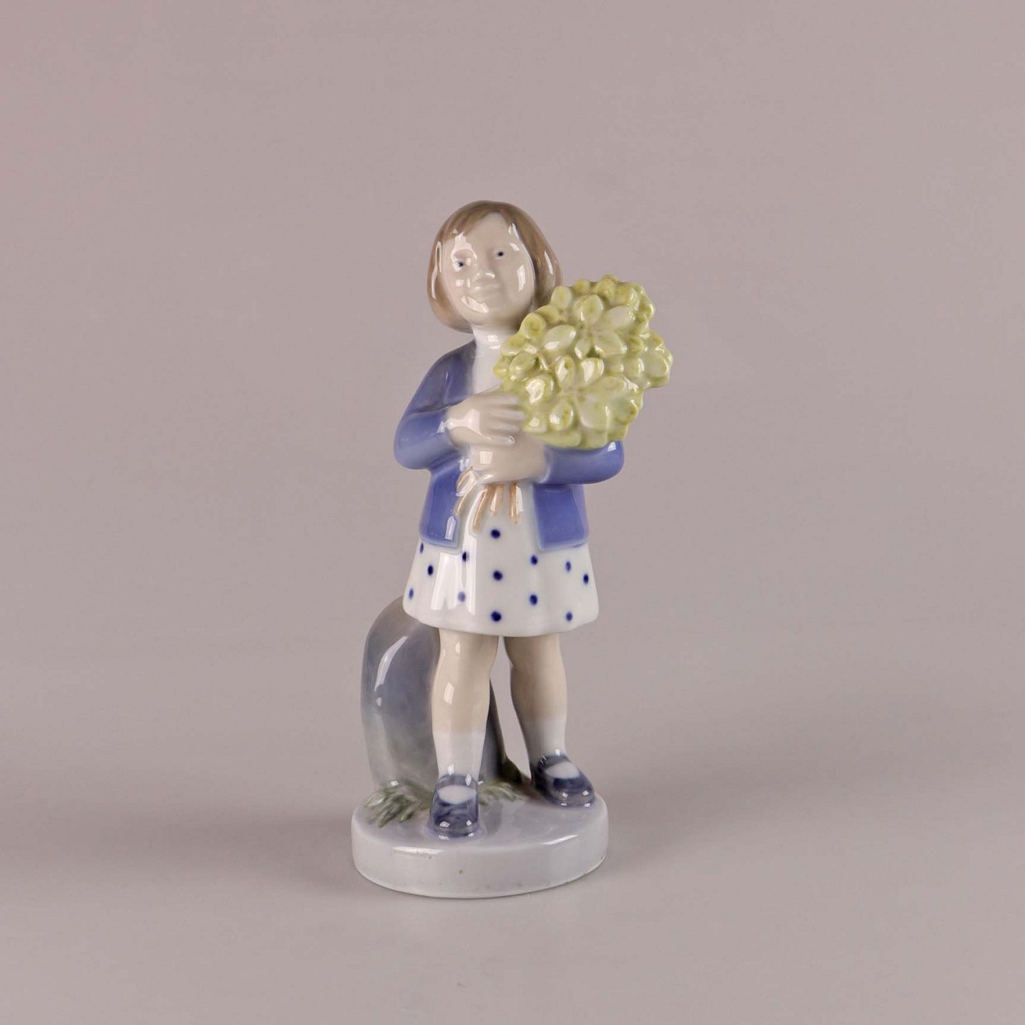 Figur i porcelæn med motiv af pige med en buket blomster no 4527Producent Royal Copenhagen