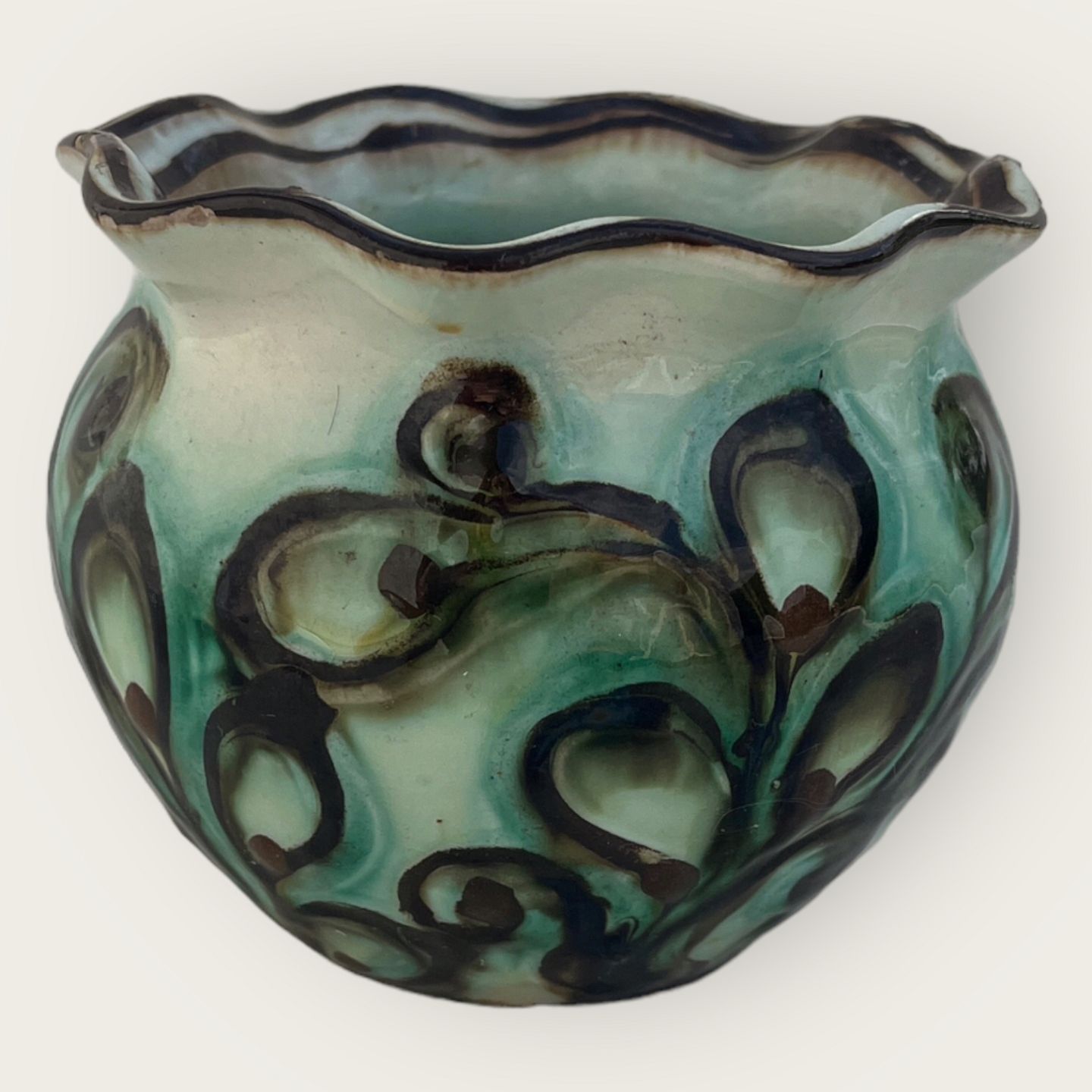 Kähler keramik, Skål med flæsekant, 10cm høj, 12cm i diameter *Med små afslag pæn patineret*Lager: 1