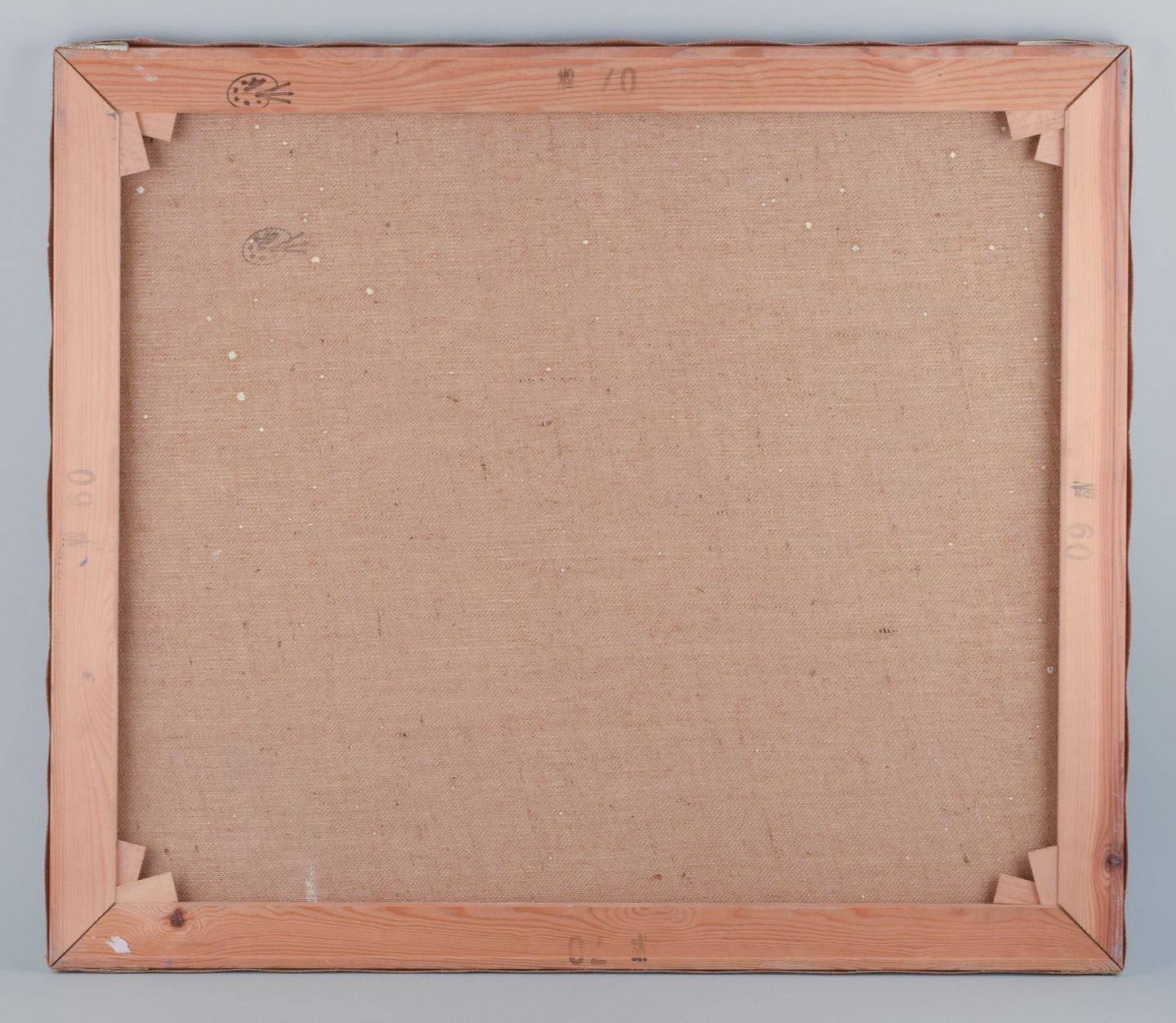K. Westerberg alias Knud Horup, dansk kunstner, olie på lærred. Modernistisk stil. Landskab med person.1970’erne.