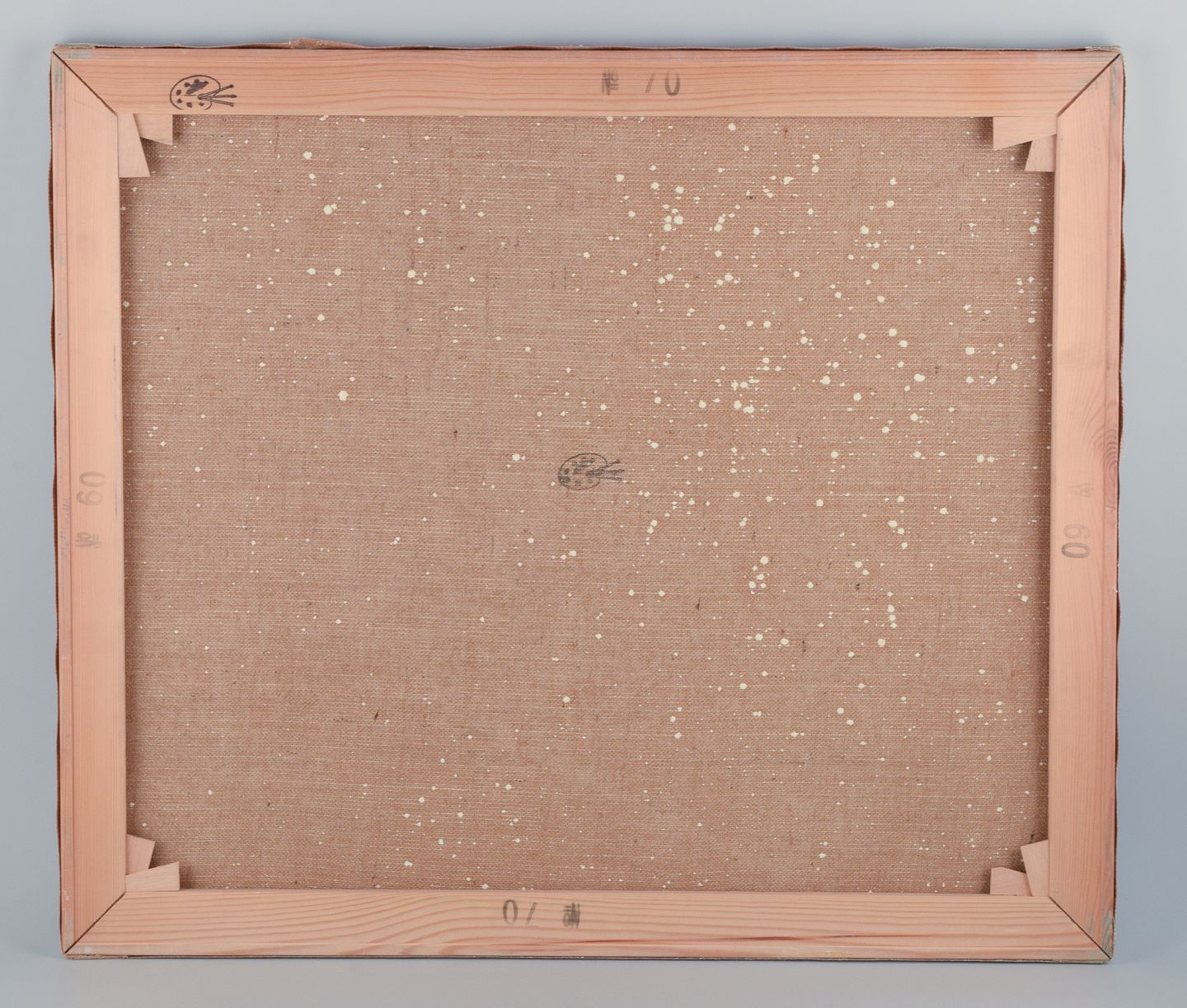 K. Westerberg alias Knud Horup, dansk kunstner, olie på lærred. Modernistisk stil. Landskab med personer.1970’erne.