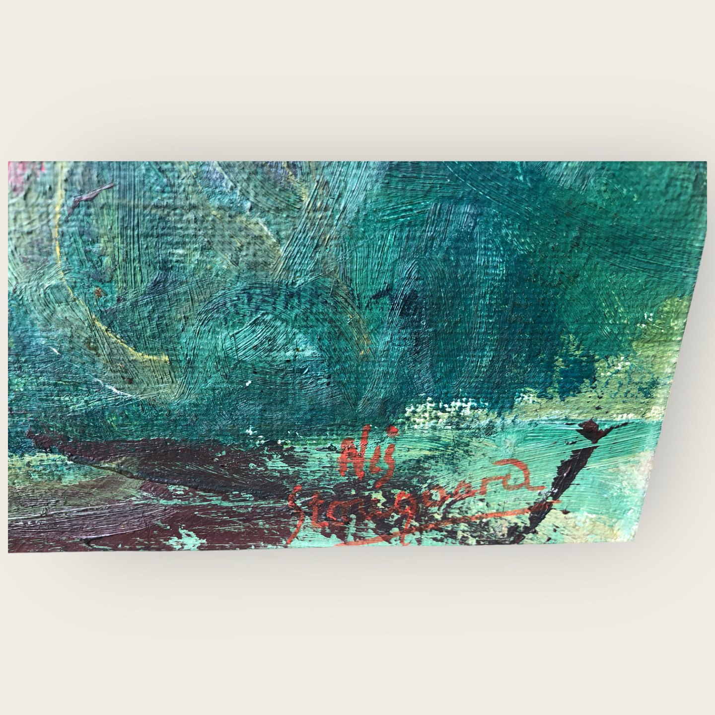 Nis Stougaard, Maleri på lærred, motiv fra havn på Bornholm. Mål med ramme 66,5x53,5 cmLager: 1