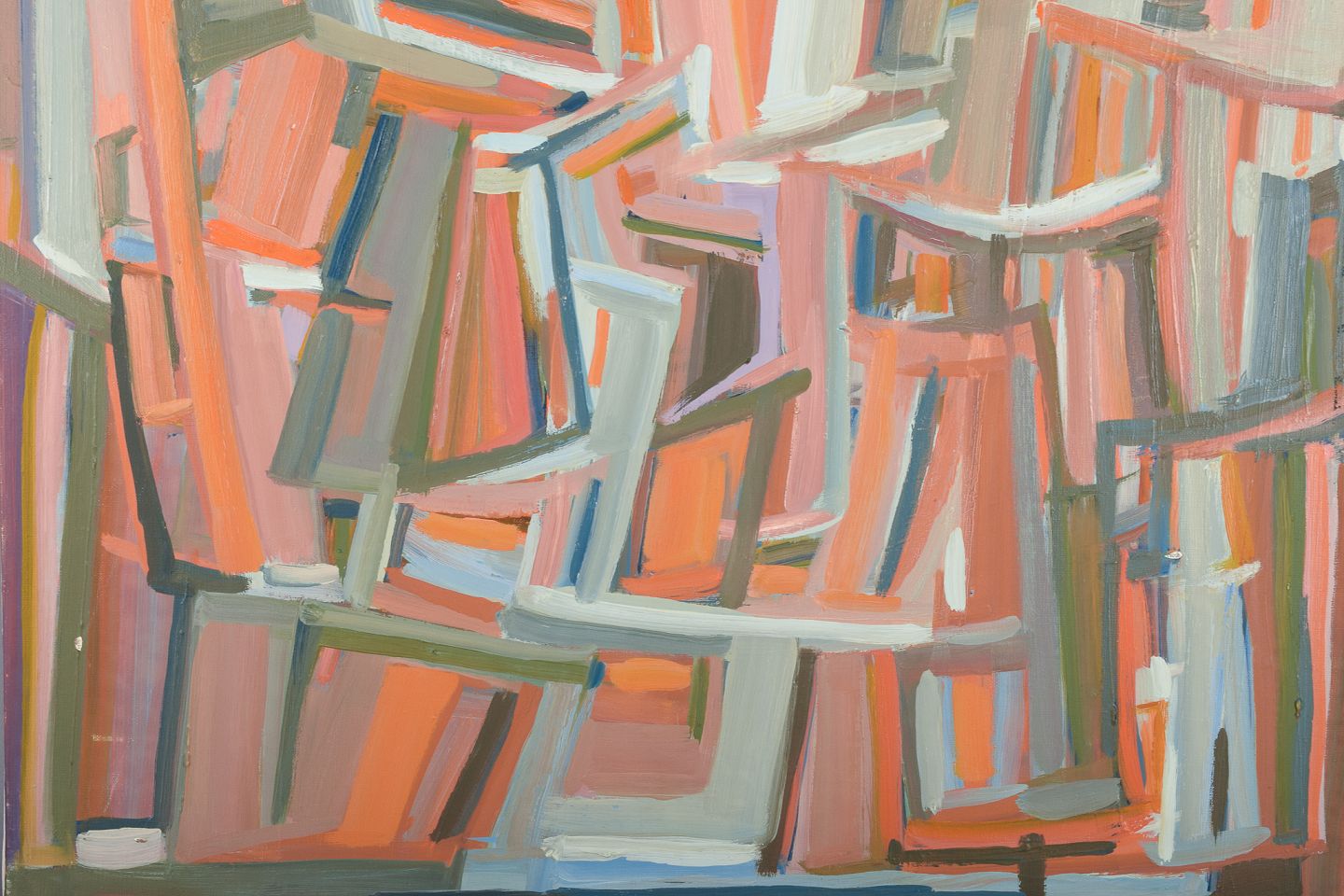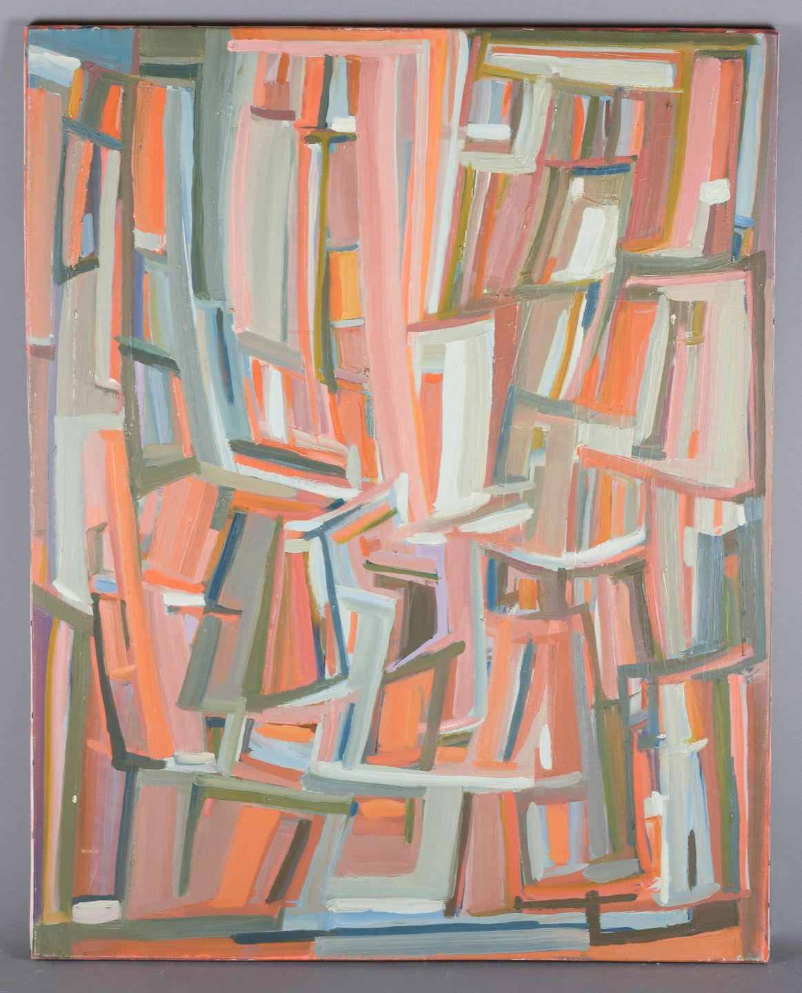 Olie på lærred. Abstrakt komposition. Koloristisk palette.