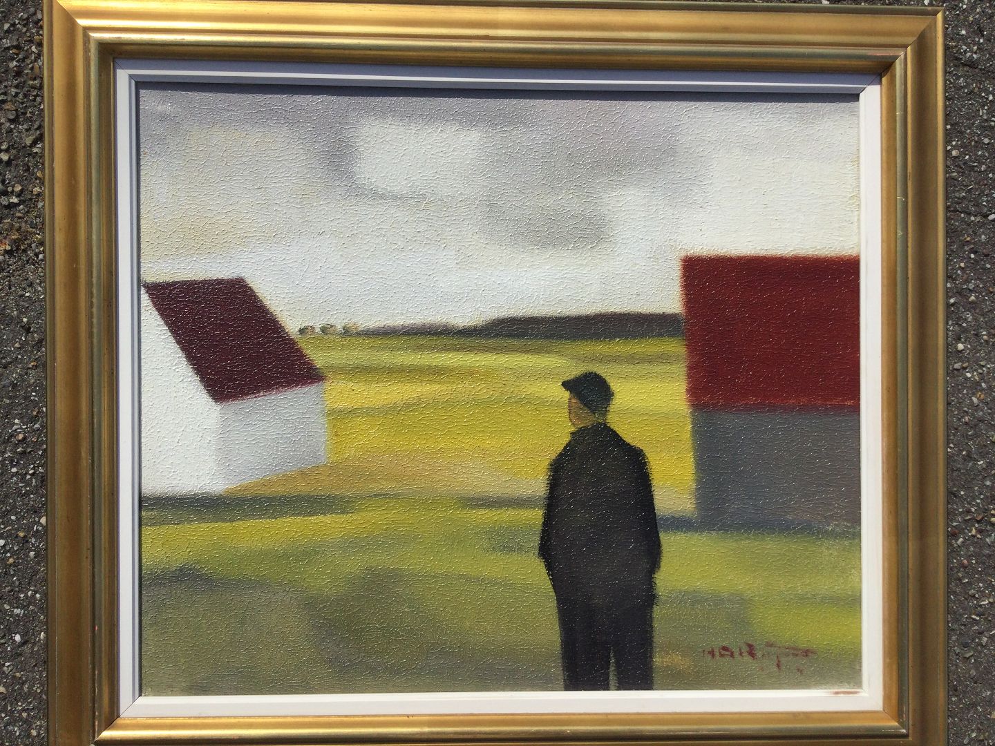 Knud Horup (1926-73):Person ved gårde i landskab.
