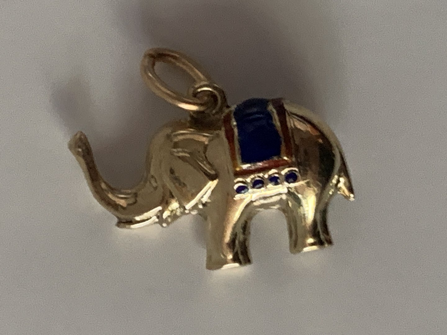 Elefant med emalje Charms / Vedhæng i 14 karat guldStemplet 585