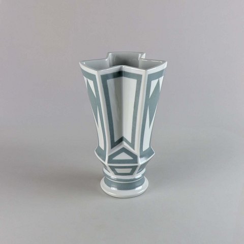 Kantet vase i porcelæn, dekoreret med grå mønstre. No 5818/1898Design Lisa Enquist