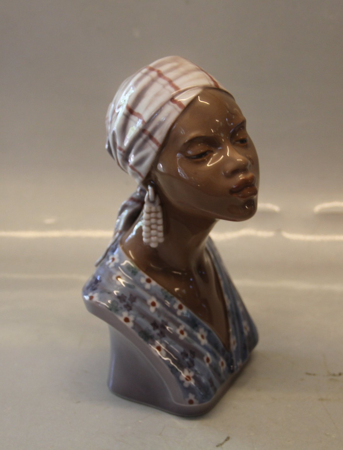Dahl Jensen 1211 Afrikansk kvindehoved (DJ) 19.5 cm Buste 1. sortering Mærket med kongelig krone og DJ Copenhagen i hel og fin standFuglsangsgade 4