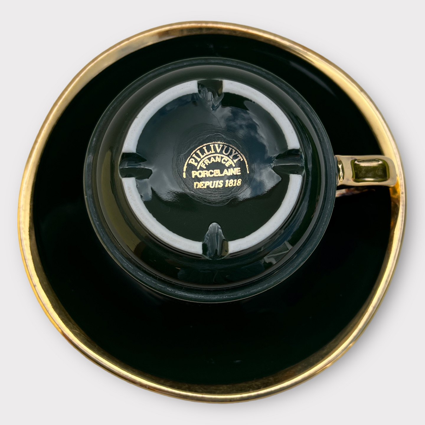 Pillivuyt, Grøn Bistro med guldkant, Tekop, 8,5cm i diameter, 7cm høj *Pæn brugt stand*Lager: 1