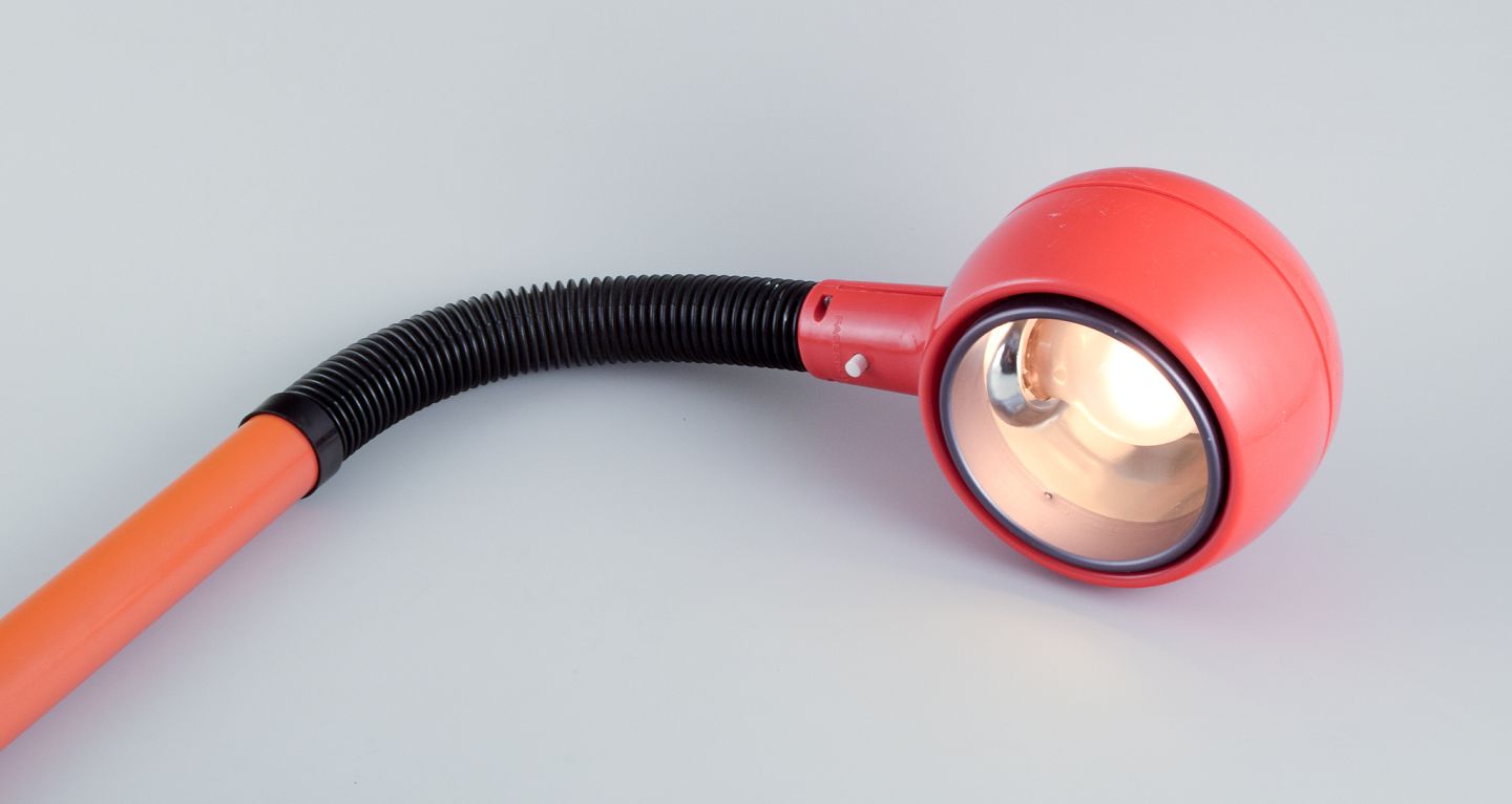Fagerhults, Sverige. Retro designer skrivebordslampe i orange plast med bevægelig arm.1970’erne.