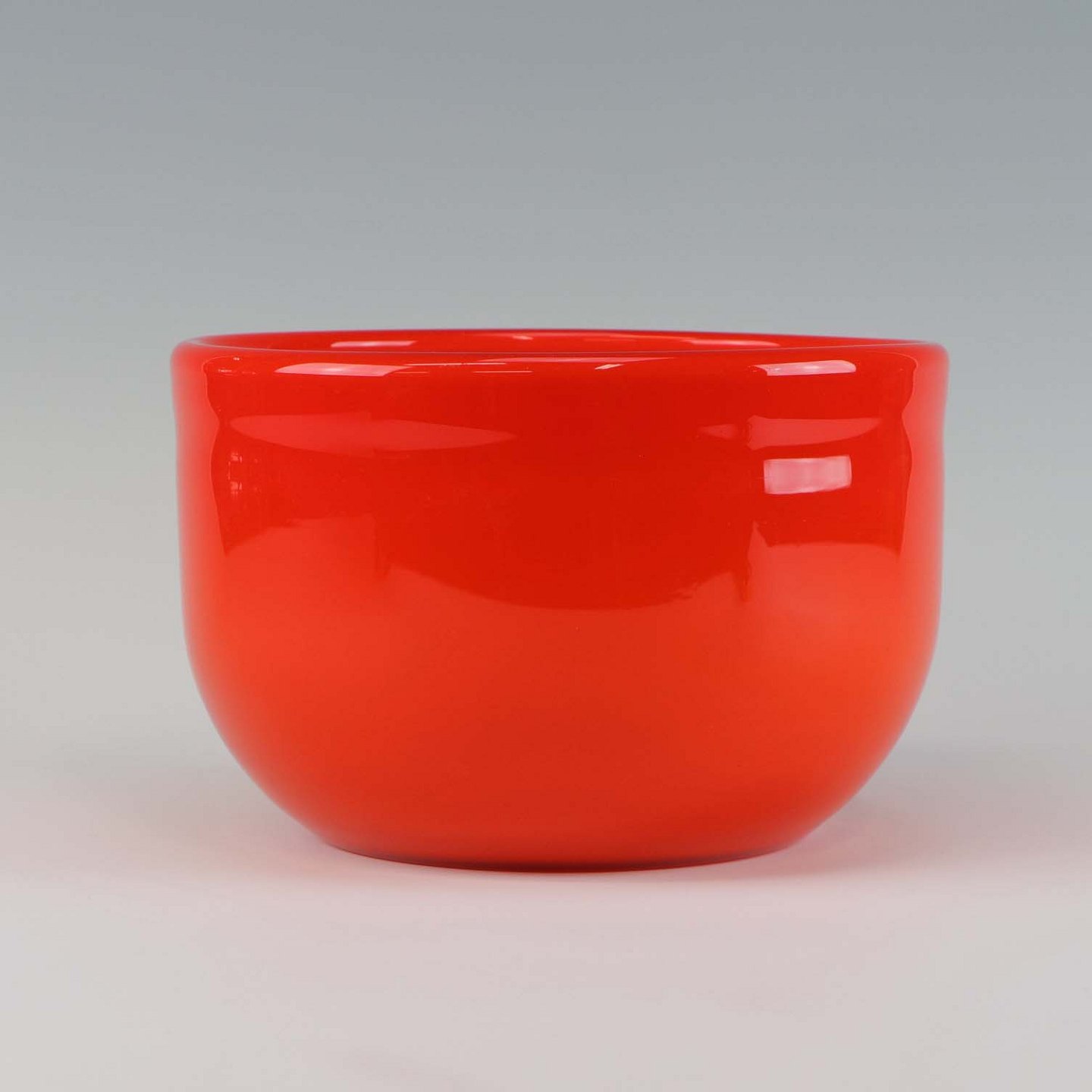Skål af orangerød mundblæst glas fra serien PaletDesign Michael Bang