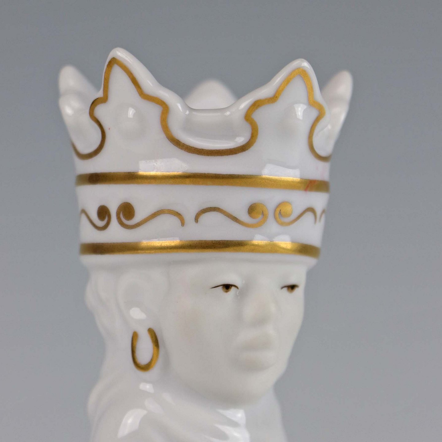 Lysestage af porcelæn. Kaspar med guld fra serien Hellig Tre KongerDesign Finn Næss Schmidt