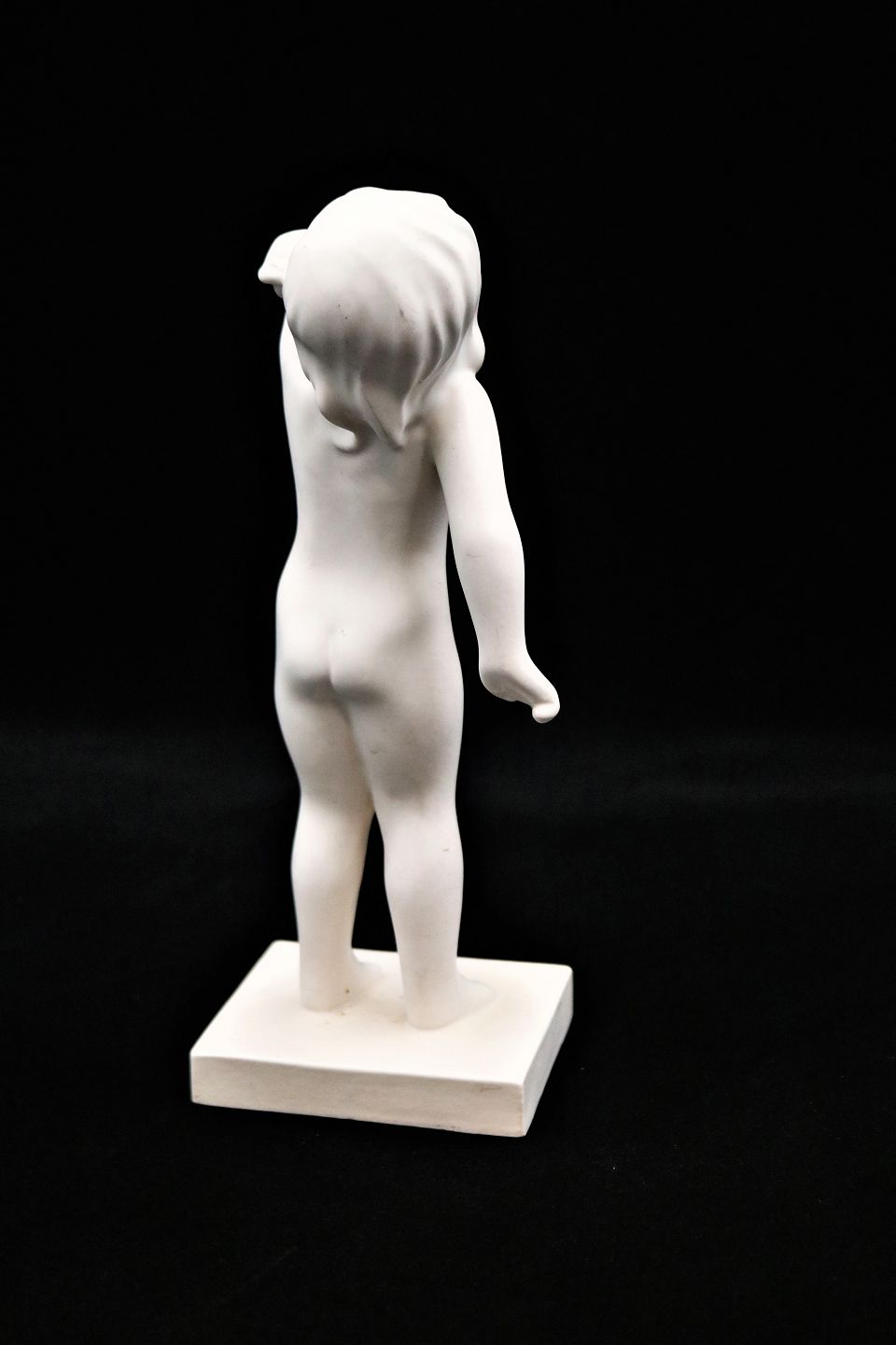 Sjælden Arne Bang figur af nøgen pige med cremefarvet glasur lavet for Ipsens Enke , stemplet AB - 916. Højde: 22cm.Er i hel og i fin stand.