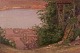 Christian Zacho (1843-1913), dansk kunstner.Olie på malerplade. Dansk sommerlandskab. Stråtækt hus ved sø med udsigt over marker.