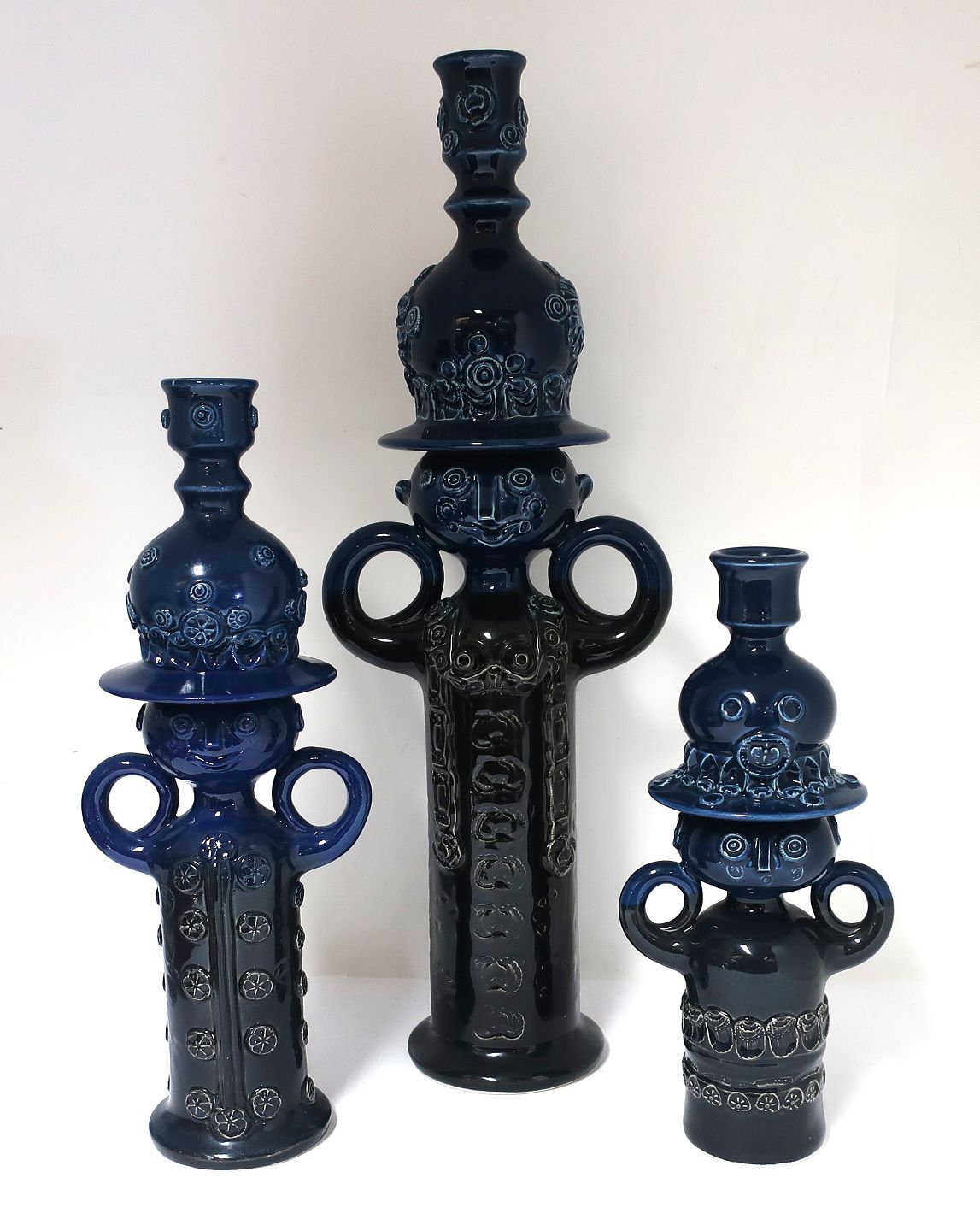 Rosenthal studio-linie. 3 styk blå figurer af Bjørn Wiinblad. Højde 26,5, 33,5 og 47,5 cm. Alle er uden skader. Udstiller