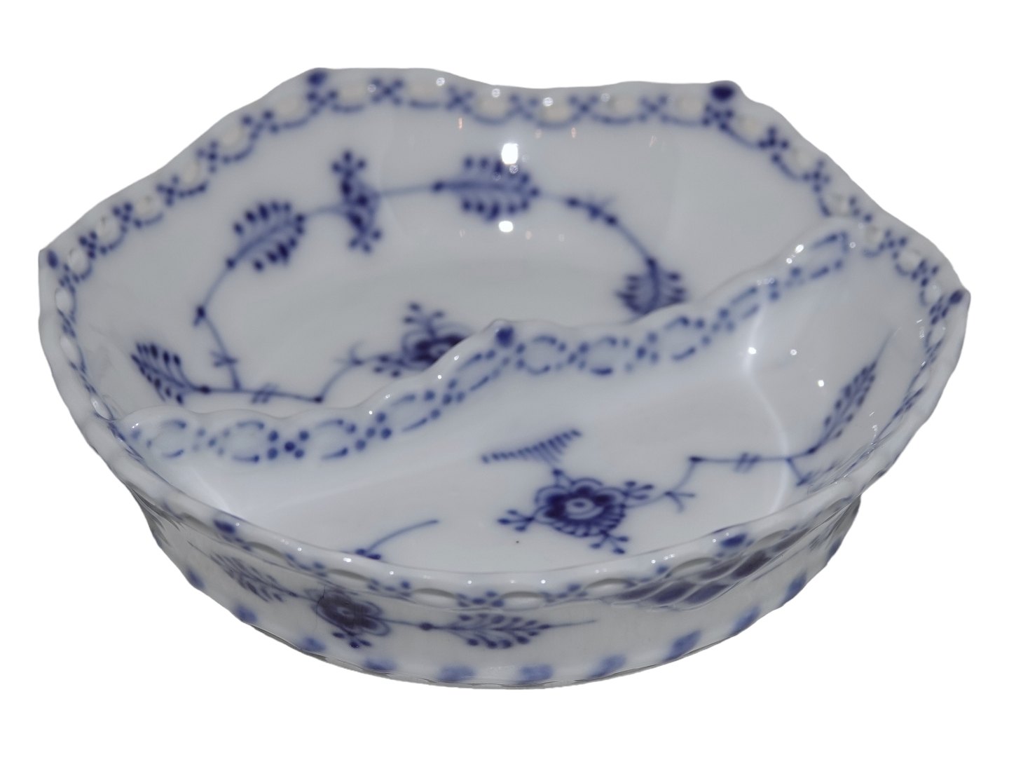 Royal Copenhagen Musselmalet Helblonde, lille to-delt skål / asiet.Fabriksmærket viser, at denne er produceret i mellem 1928 og 1935.