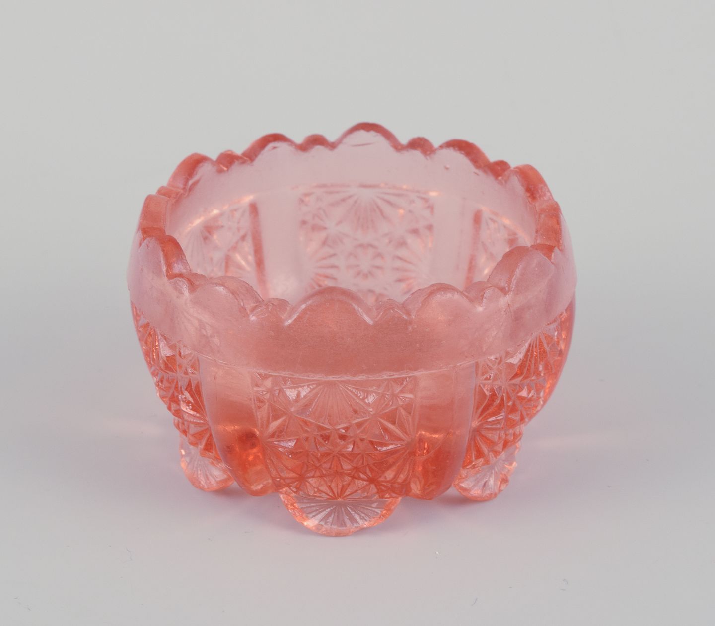 Fåglavik Glasbruk (1874-1980), Sverige.Seks saltkar i farvet glas. Rosa/orange håndlavet glas.