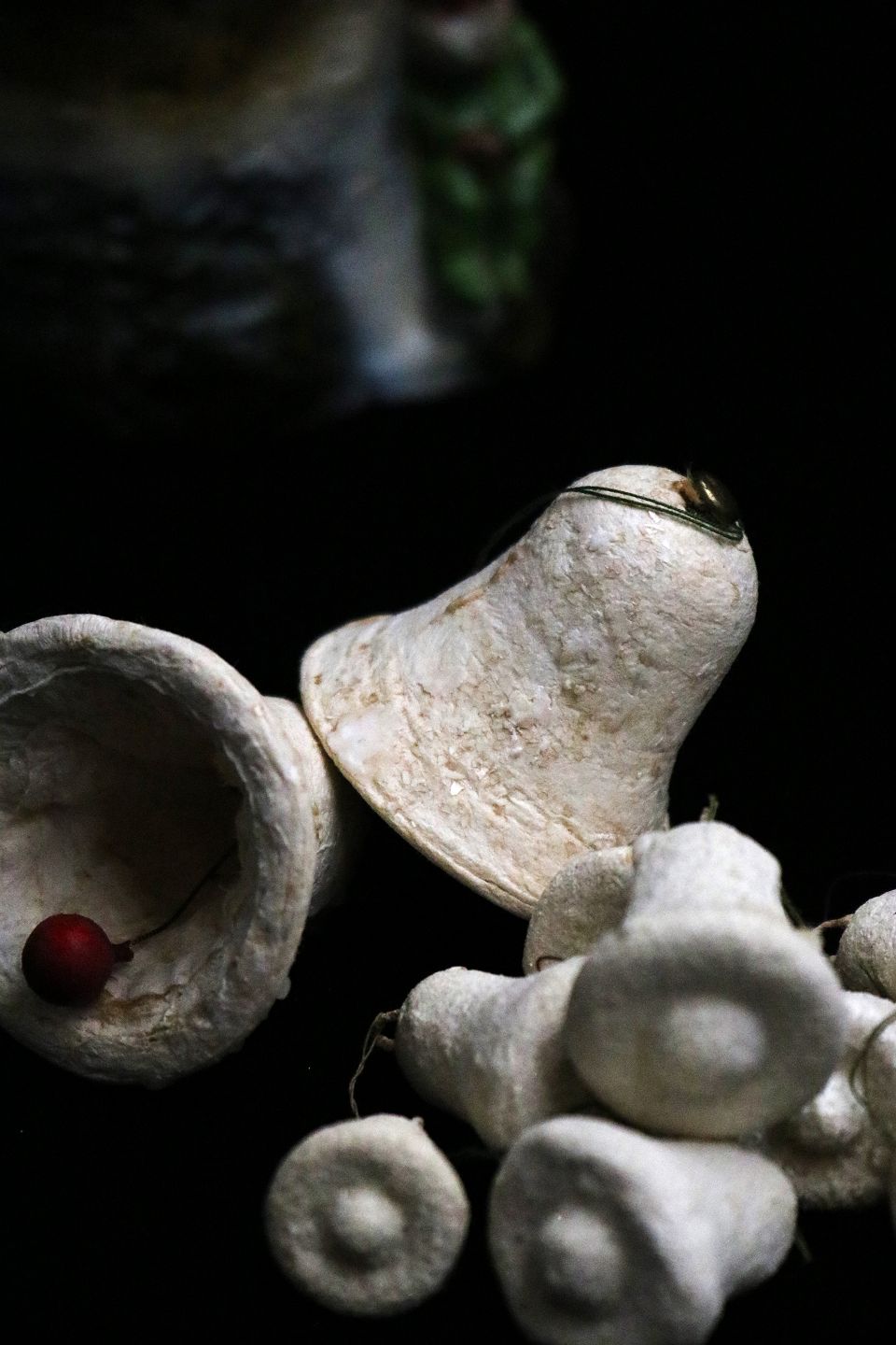 Et lille Lot af gamle juleklokker fra 40érne i vat til at hænge på juletræet.Der er 2 store (H: 5cm.) og 8 små (H: ca. 3cm.)