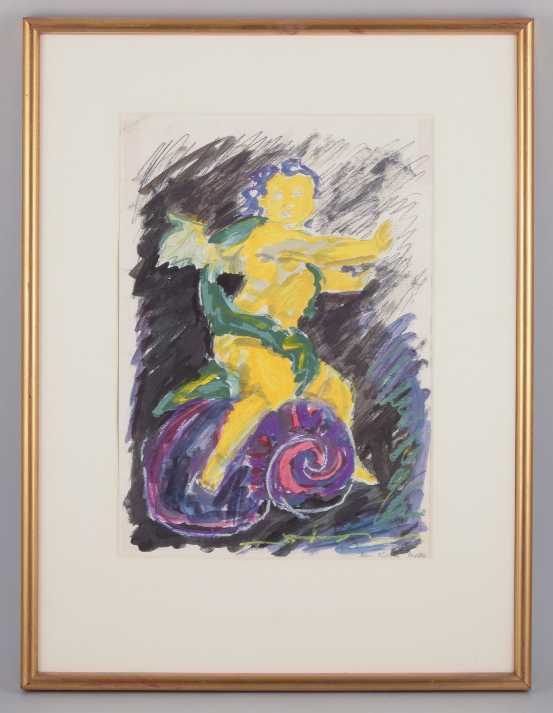 Nina Kleivan, Norwegian-Danish artist, born 1960. Gouache on paper.Depiction of putti with expressive strokes.