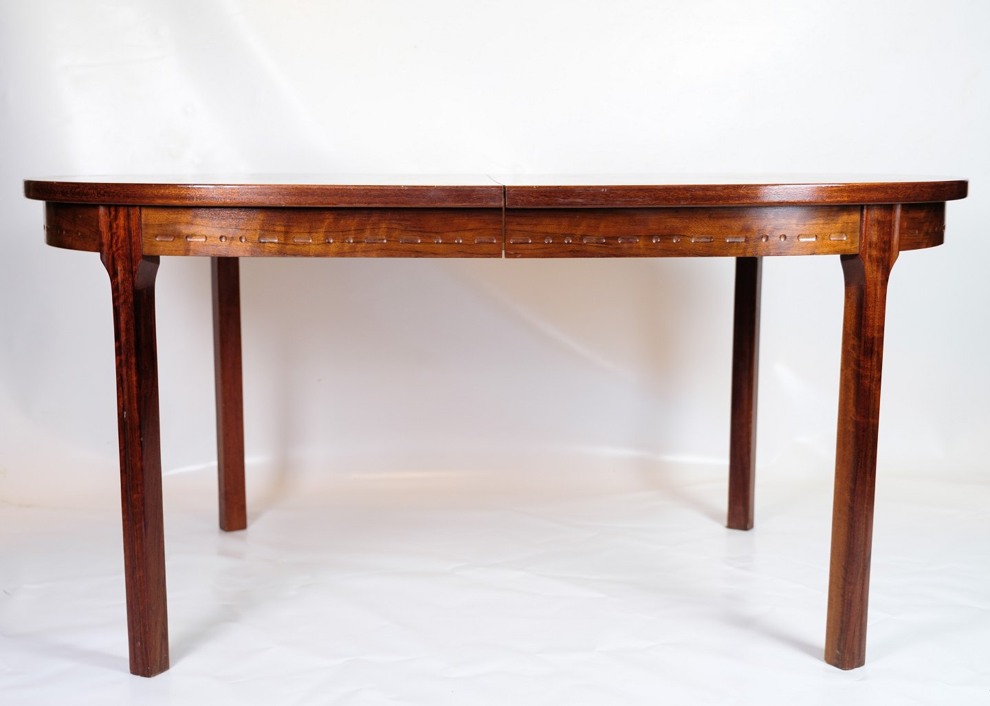 Spisebord af dansk design fremstillet i valnød fra omkring 1960'erne.Mål i cm: H:73 B:155 D:100