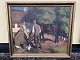 S. Christiansen, Par på landet med hest, ænder og høns, olimaleri på lærred. Mål med ramme: 118x103Lager: 1