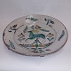 Stettinergods: Stettiner fad I keramik dekoreret med kronhjort. Fremstillet omkring 1840. Smukt dekoreret. Som det fremgår af fotos er fadet klinket. Mål: H. 6 cm Ø. 31,5 cm.
