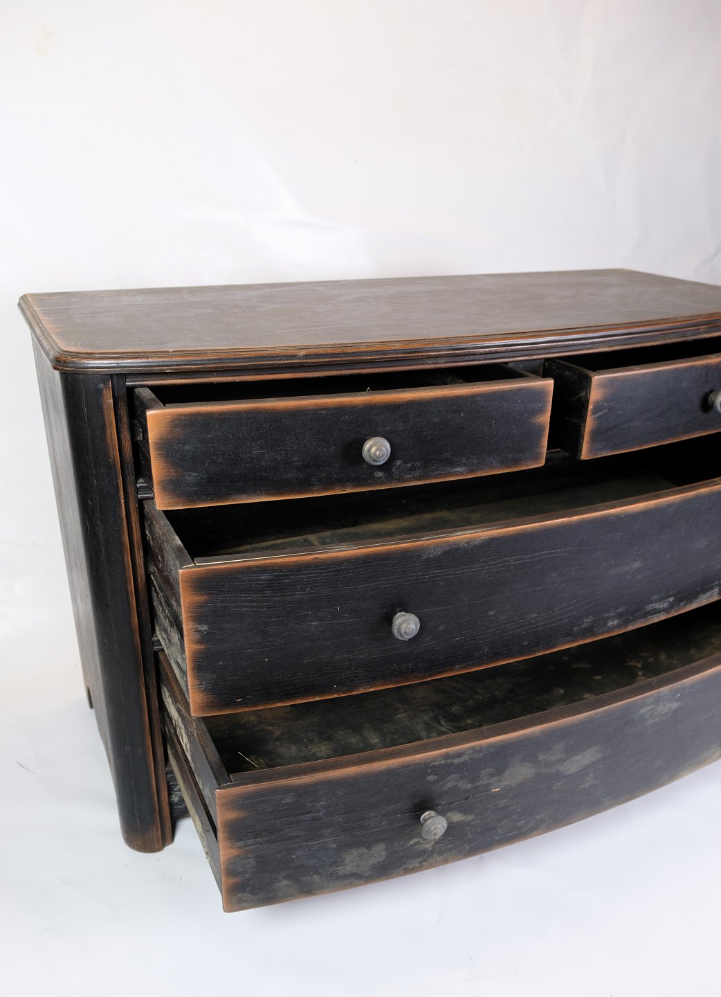 Sort Bemalet kommode med buende front og 4 skuffer med patina fra omkring 1950'erne.Mål i cm: