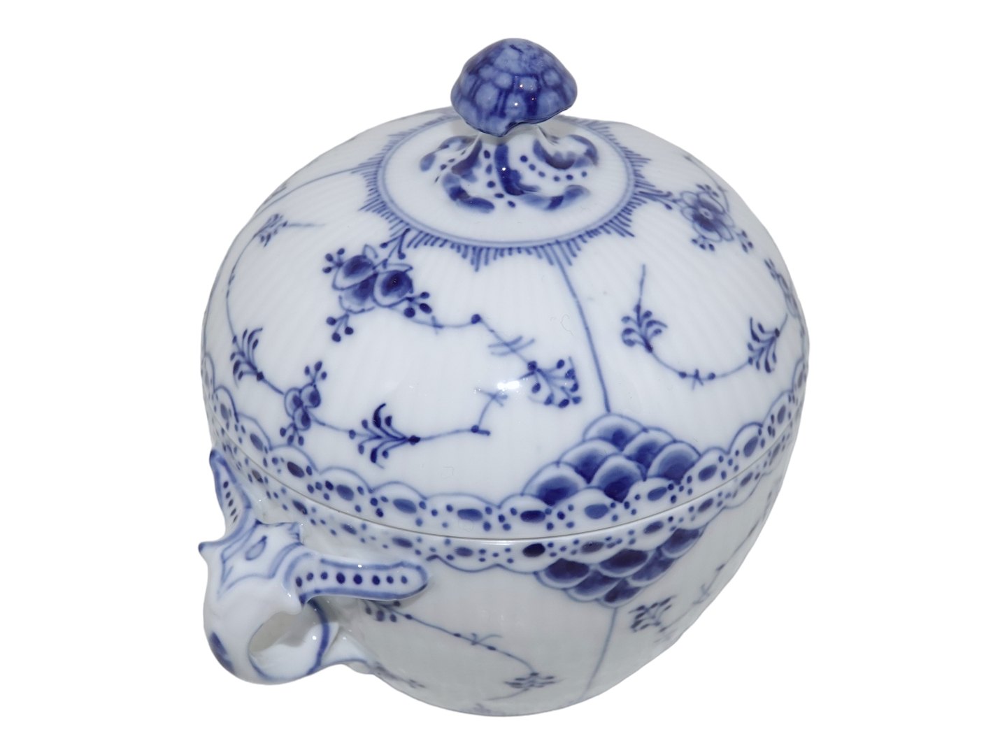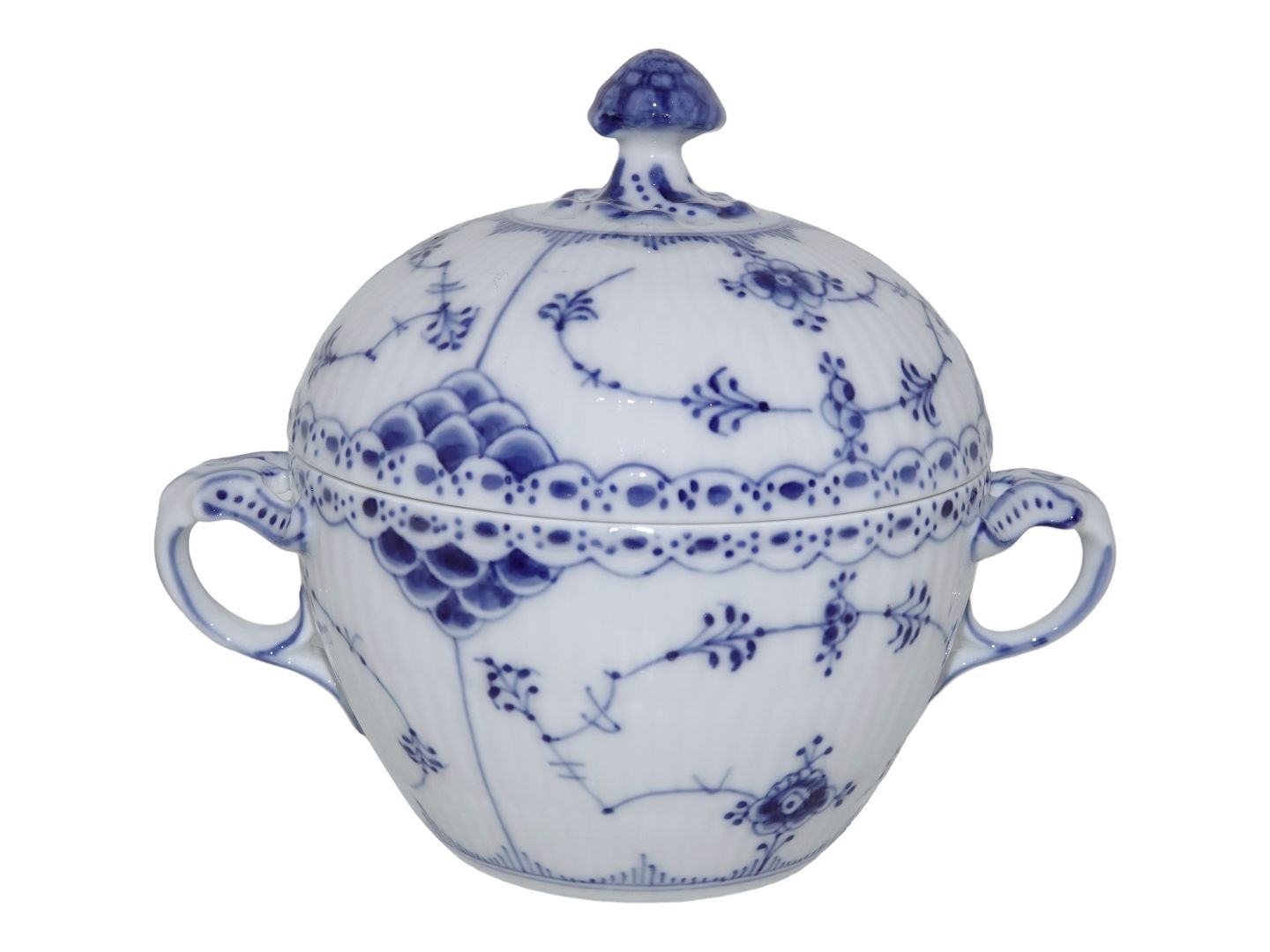 Royal Copenhagen Musselmalet Halvblonde, stor sukkerskål.Denne er produceret mellem 1923 og 1928.