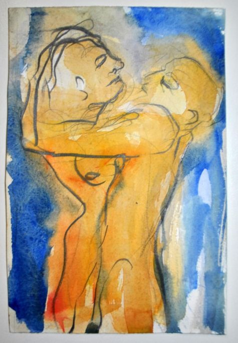 Degett, Karen (1954 - 2011) Danmark: Kærlighed. Bly/akvarel på papir. Usigneret. 26,5 x 18 cm.Uindrammet.