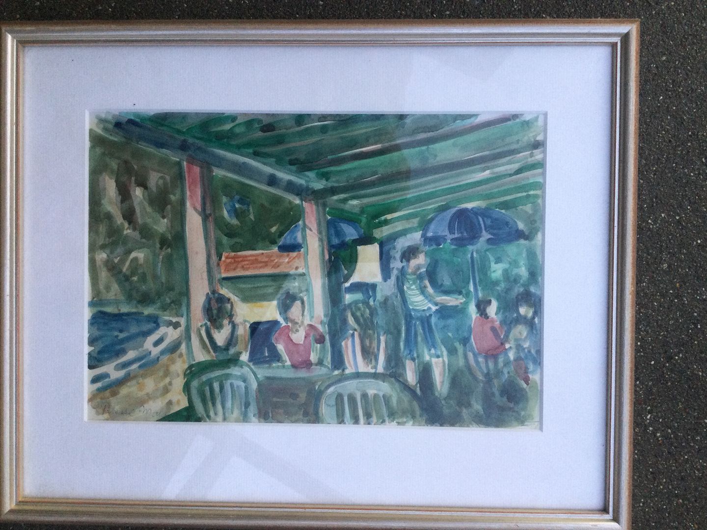 Akvarel af Leif Ewens - Sydlandsk Café stemning.