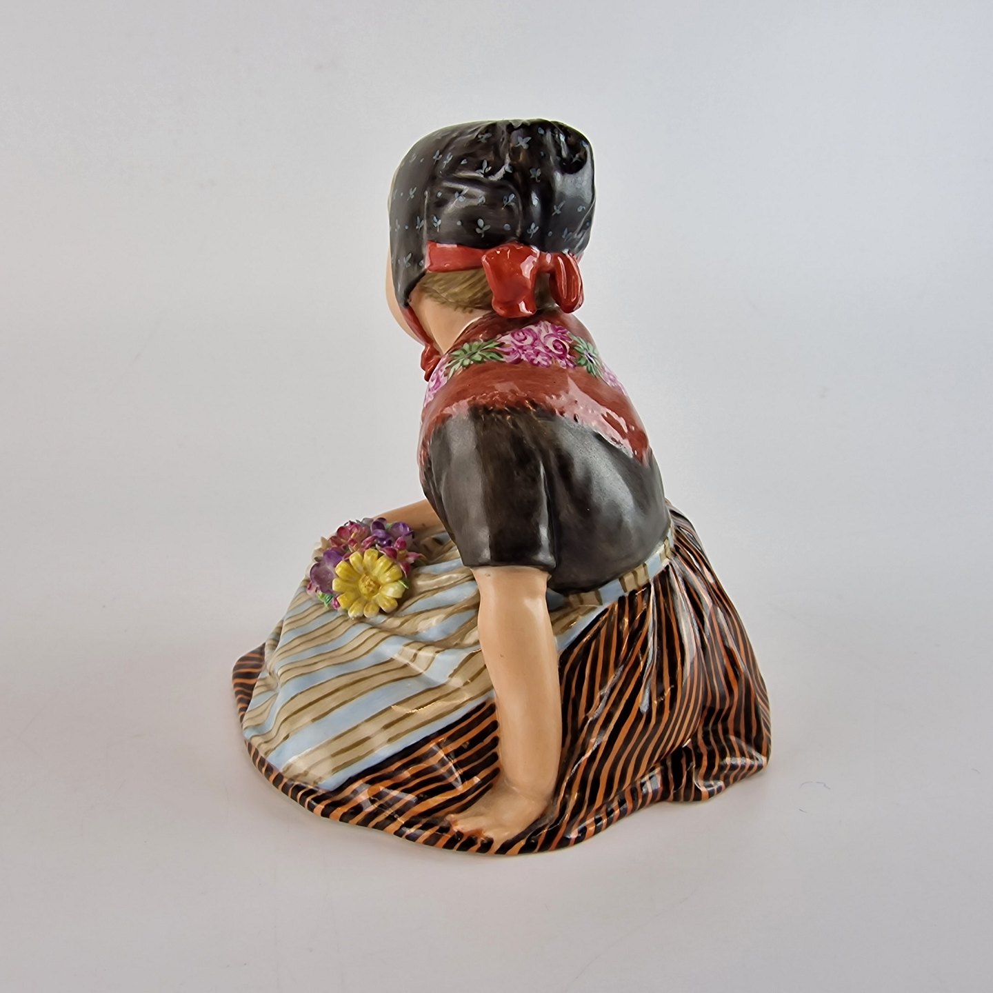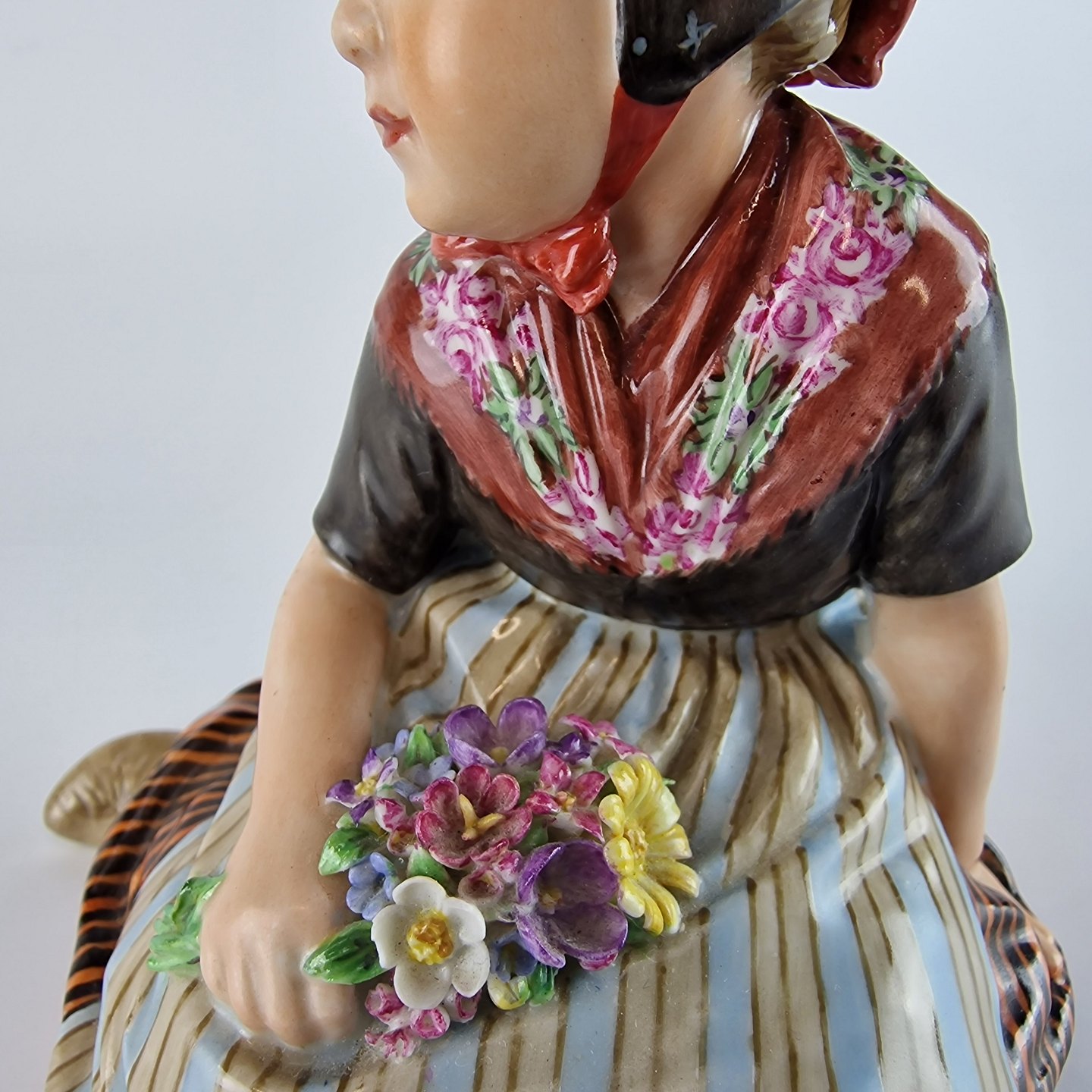 Kongelig håndmalet porcelænsfigur af en pige med blomsterbuket. Nr 12416Titel "Fanø"