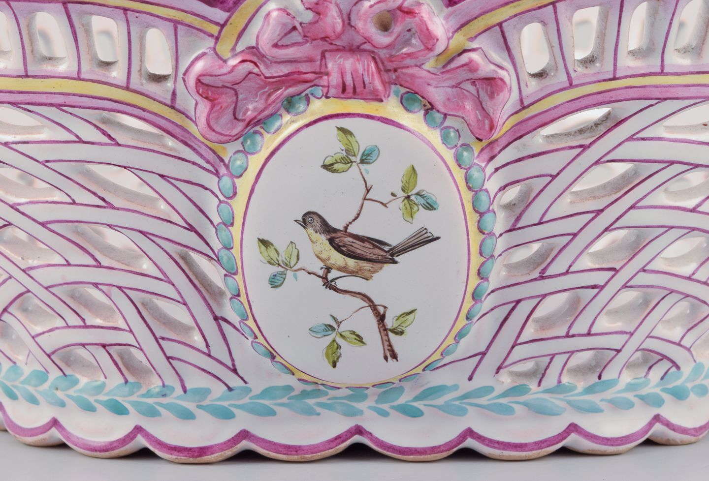 Emile Gallé (1846-1904), fransk glaskunstner og designer, Nancy, Frankrig. Stor gennembrudt skål i fajance.Hånddekoreret med fuglemotiver.