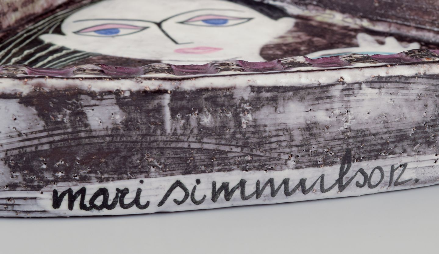 Mari Simmulson for Upsala-Ekeby, Sweden.Platter in glazed stoneware featuring a female figure holding a flower stem.