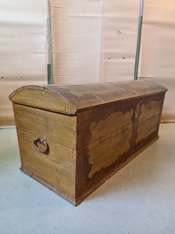 Kiste i malet massivt fyrretræ, fra år 1874.Den har brugsspor.