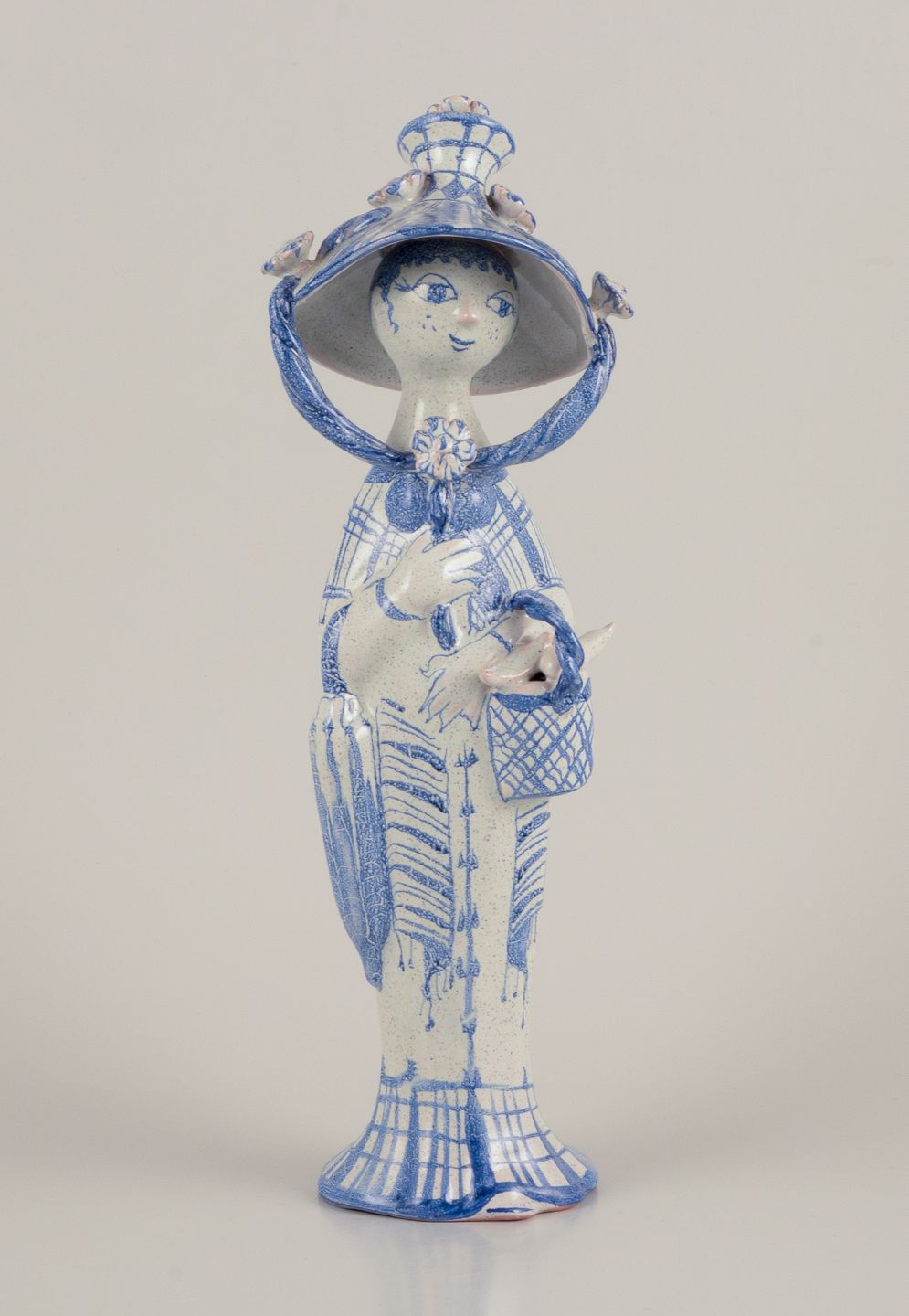 Bjørn Wiinblad (1918-2006). "Efterår" fra serien "De fire årstider", figur i blåglaseret lertøj.