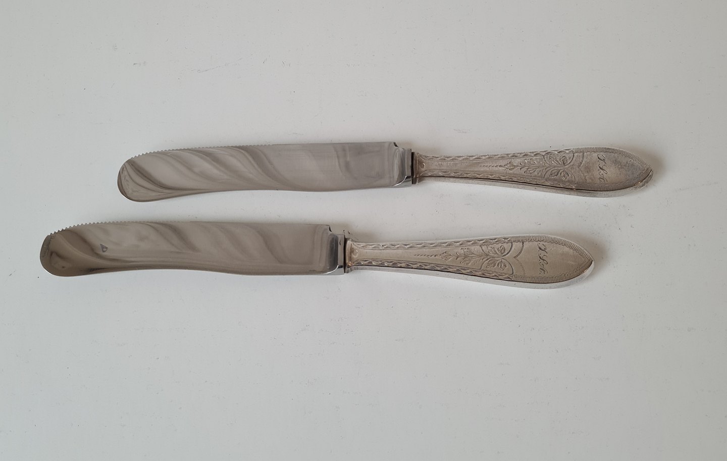 Empire frokostkniv i sølvplet og stål med bredt bladLængde 21 cm.