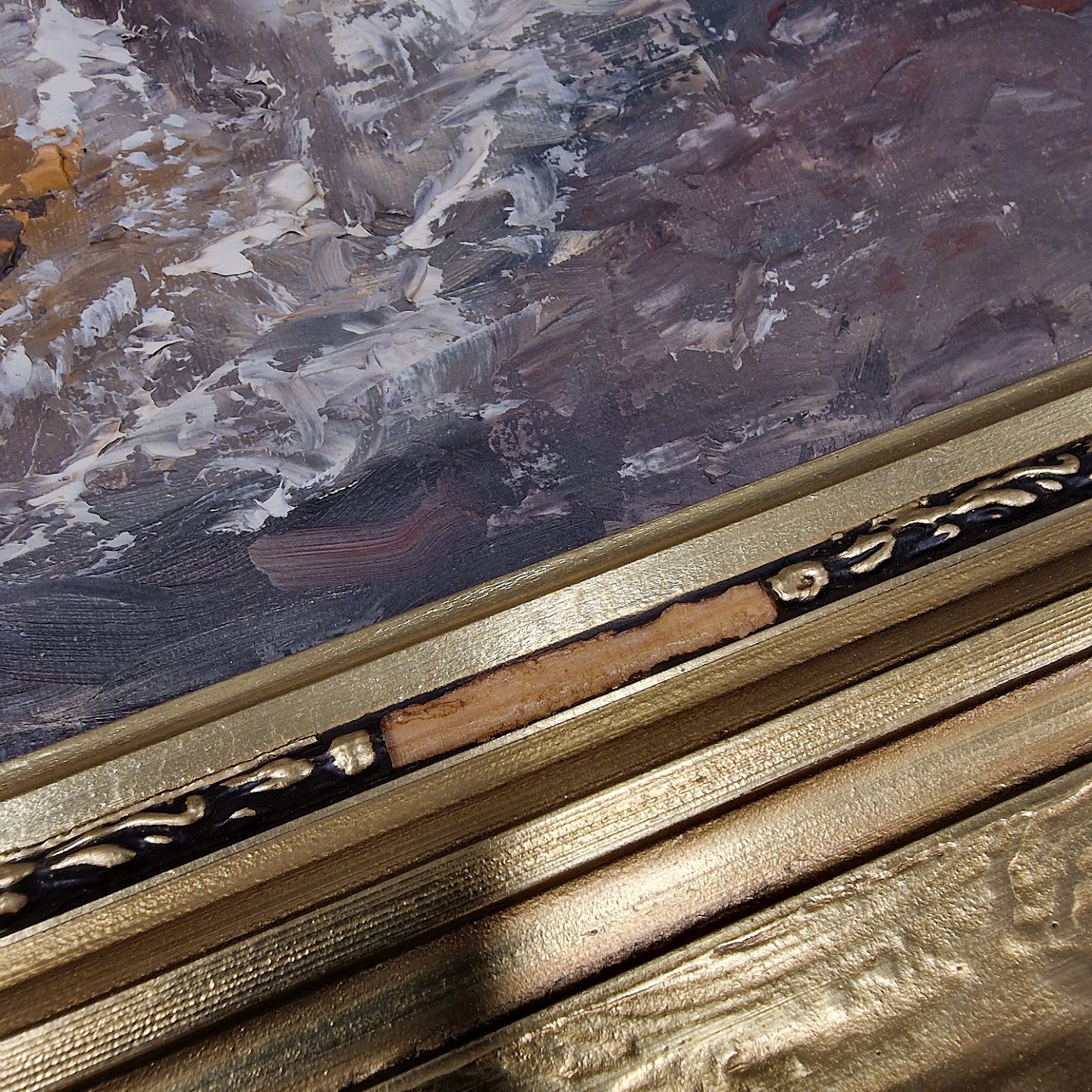 Oliemaleri på lærred. Impressionistisk portræt af mand med fuldskæg og hat.Kunstner Jens Peter Nielsen (f.1933)