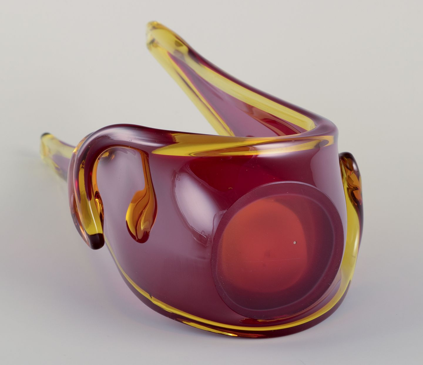 Flavio Poli/Seguso, Murano.Bowl in yellow and red art glass. Unique piece. Mouth-blown.