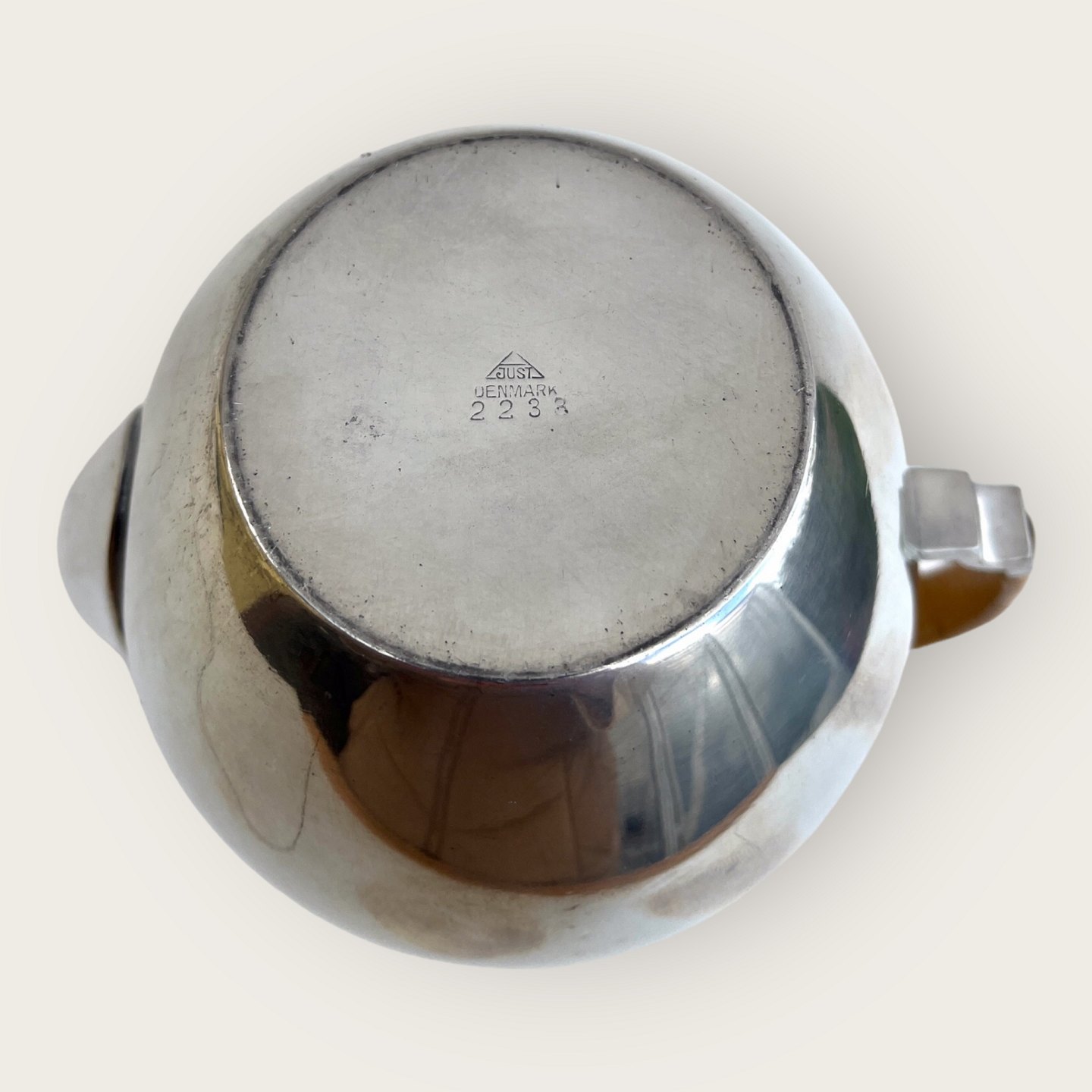 Just Andersen, Tin kaffekande med bast hank, 17cm høj, 22cm bred Stemplet 2238 *Pæn stand med enkelte brugsspor*Lager: 1