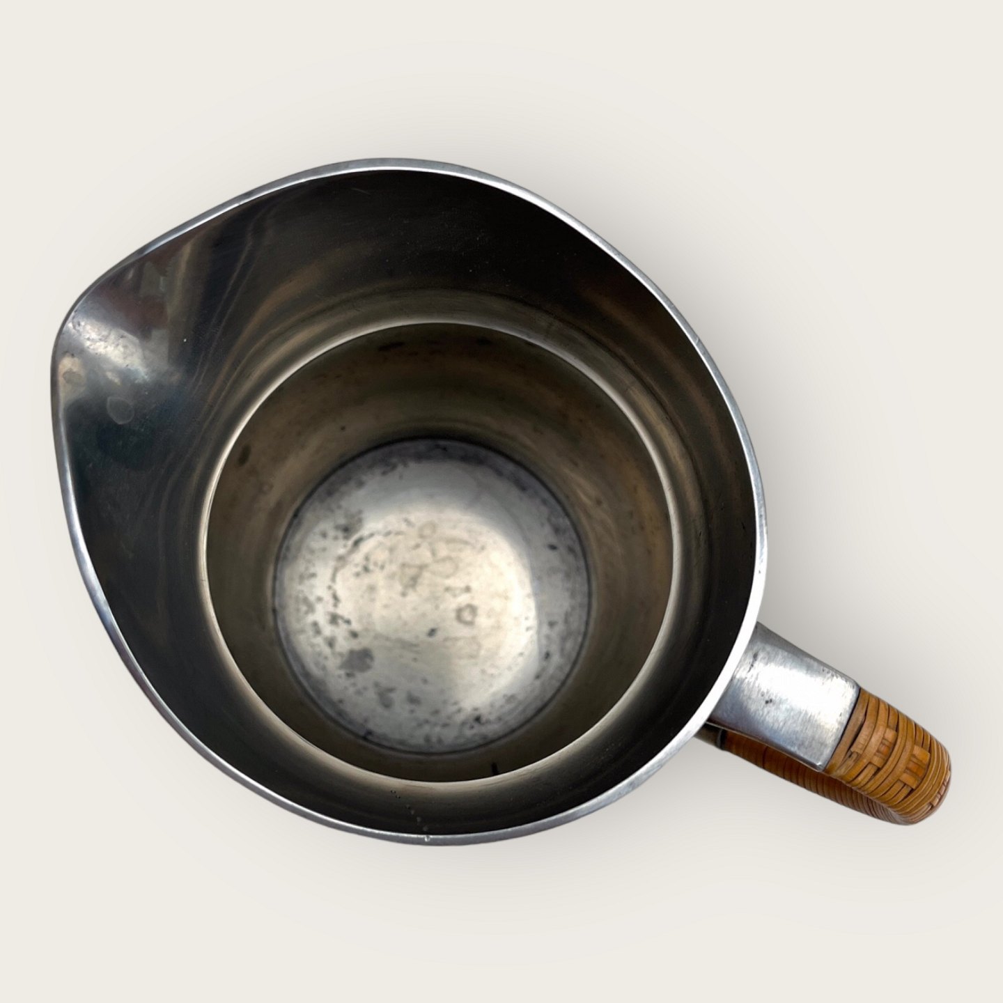 Just Andersen, Tin kande med bast hank, 16cm høj, 18cm bred, Stemplet 1058 *Pæn stand*Lager: 1
