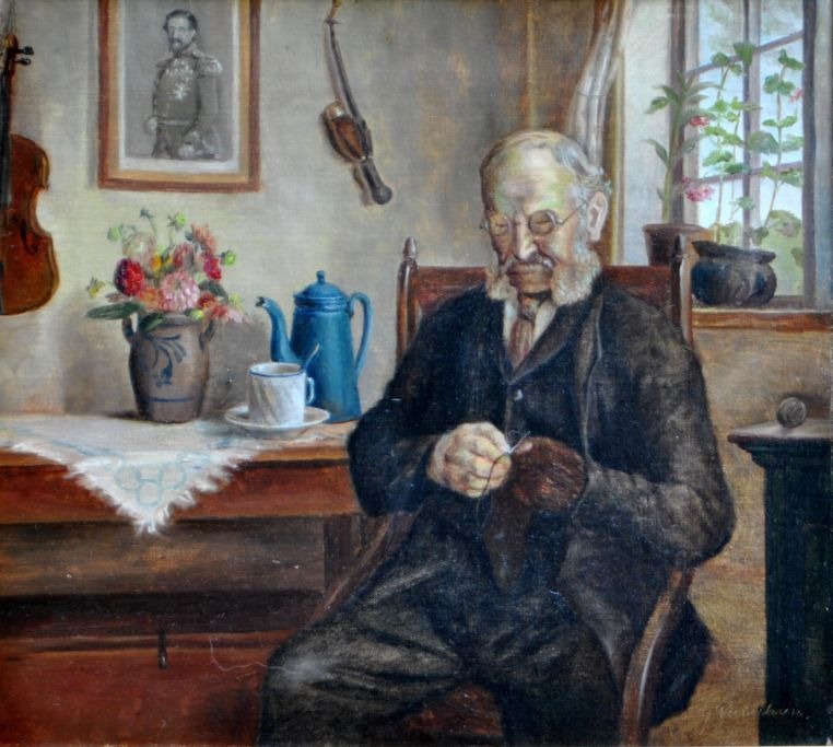 Vermehren, Yelva (1878 - 1980) Danmark: Herreportræt. Olie på lærred. Signeret Y Vermehren. 35 x 39 cm.Med hjørneornamenteret ramme: 49,5 x 53 cm.