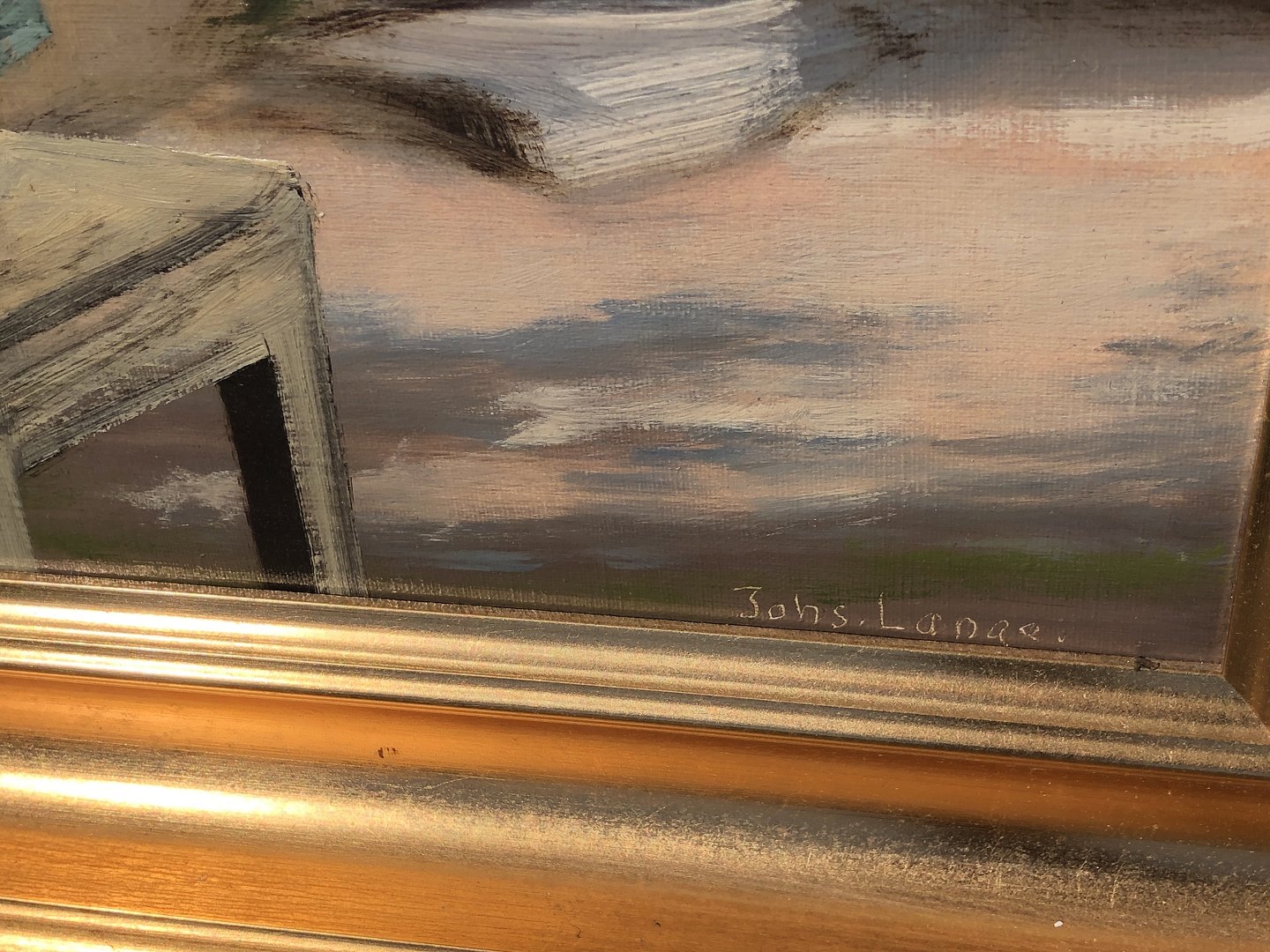 Johannes Lange, Oil painting on canvas of a fisherman who arranges nets in front of his house. Dimensions with frame 56x61 cmStock: 1