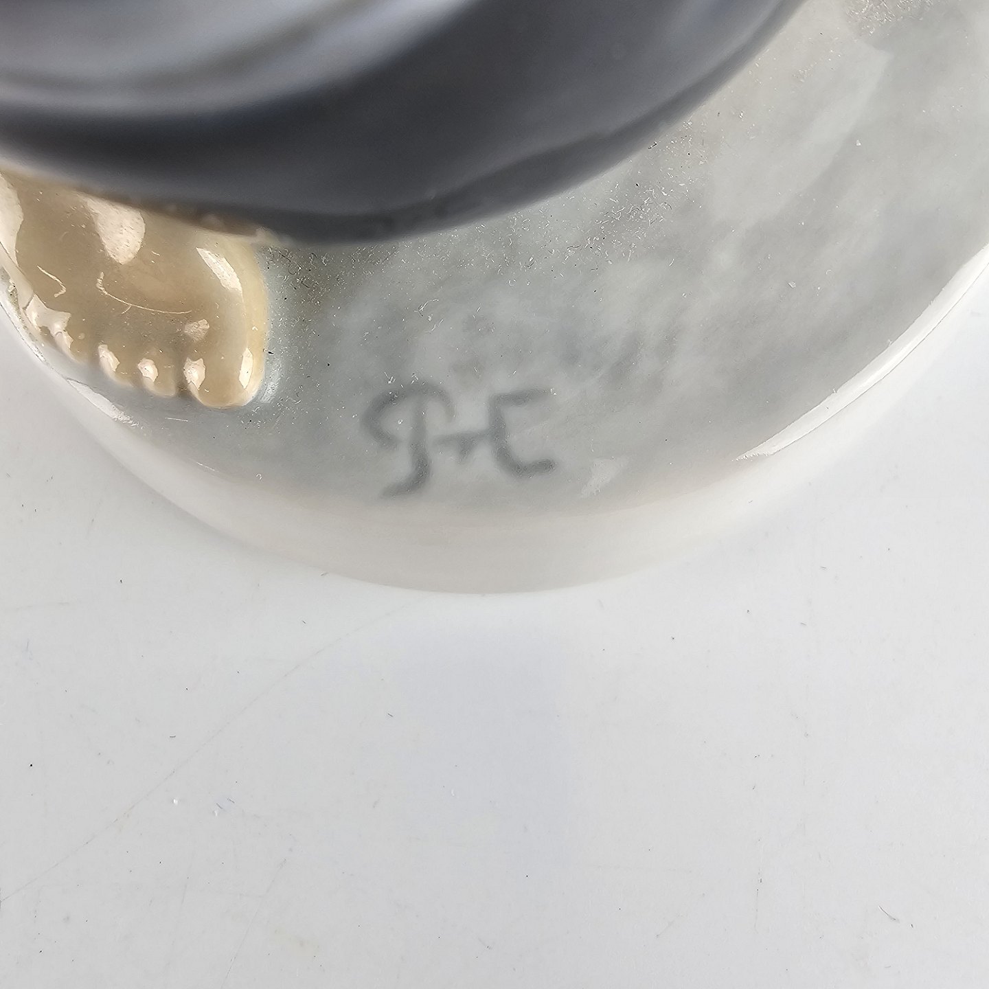 Kgl. håndmalet figur af porcelæn, forestiller en dreng som leger med et skib. Nr. 1878Formgiver Peter Herold